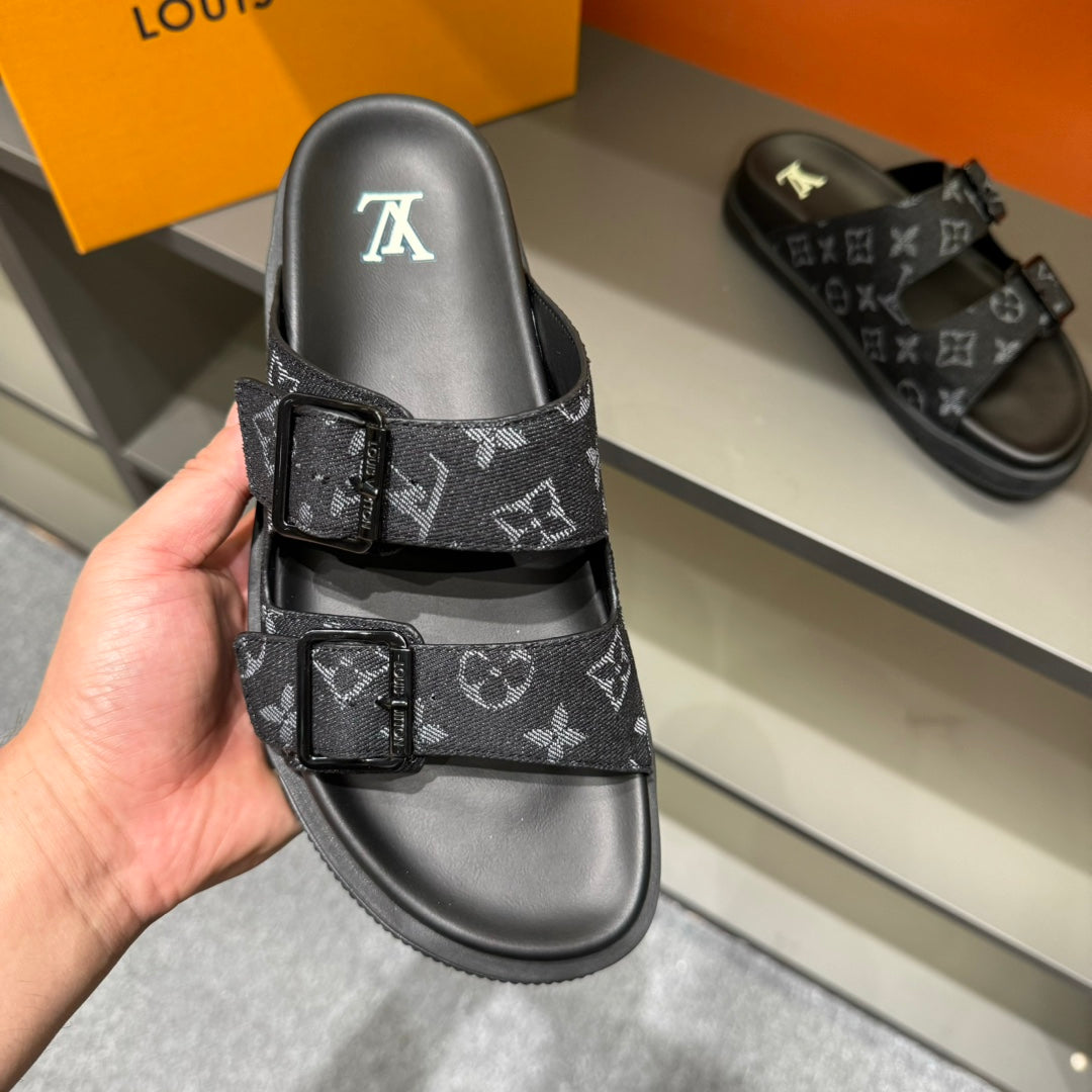 LV DAD SANDAL BLACK MONOGRAM DENIM