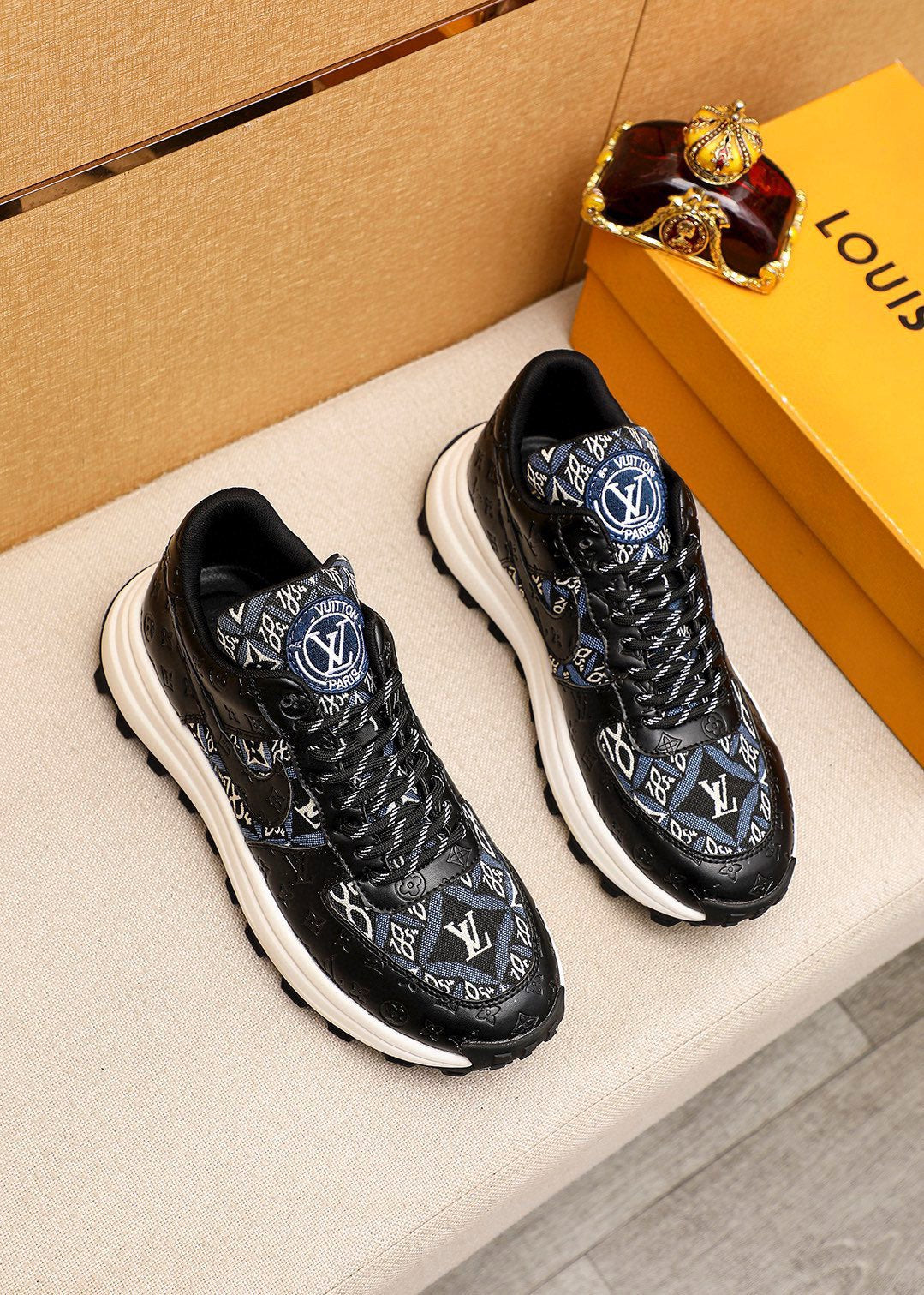 LV HIGH-END CLASSIC BLACK AND WHITE SUEDE MEN'S SHOES