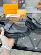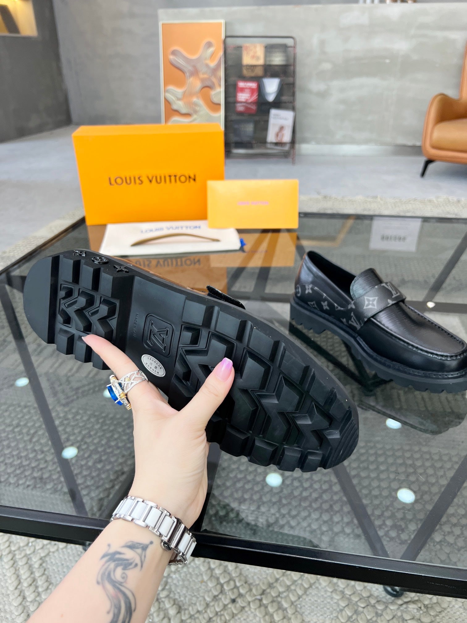 LV LOAFERS BLACK PLAIN CALFSKIN WITH MONOGRAM STRAP