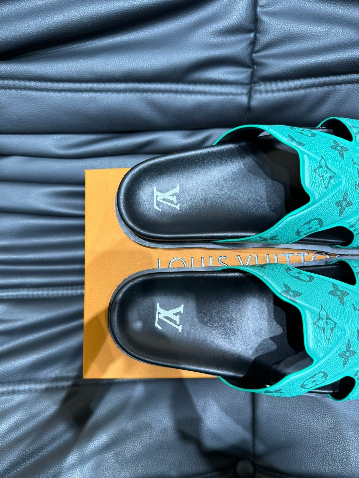 LV OASIS MULE IN SEA GREEN MONOGRAM CALFSKIN