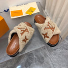 LV Paseo Flat Comfort Mule Beige Brown Fleece