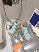 LV Pharrell and Nigo Hiking Shoes Light Blue Orange Sheepskin 383740