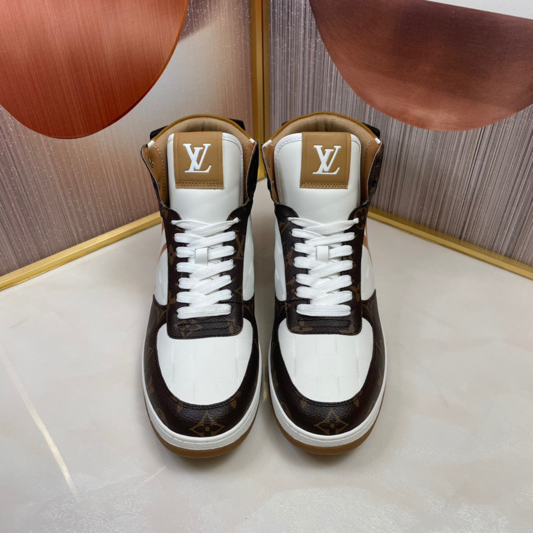 LV RIVOLI HIGH-TOP SNEAKERS BROWN WHITE