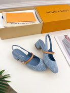 LV Romy Slingback Pump 35mm Light Blue Monogram Jacquard Fabric