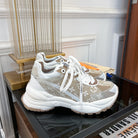 RUN 55 series leisure sports shoes are made of composite mesh fabric, rubber, adhesive film, and other technological materials. They are paired with solid color cowhide and suede cowhide, exuding a sporty style. The added cushioned lining and thickened rubber outsole provide comfortable wear. Monogram canvas heel straps and other logos convey brand interest, combining fashion and practicality. It won't rub your feet and increases height by 5cm, forcefully giving you long legs! With good looks, height, and technical features, this modern sports shoe enhances the proportion of the thighs when worn and has high technology content. 😠Perfect details 💯