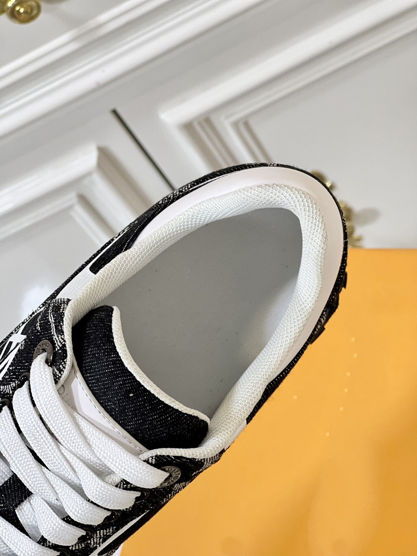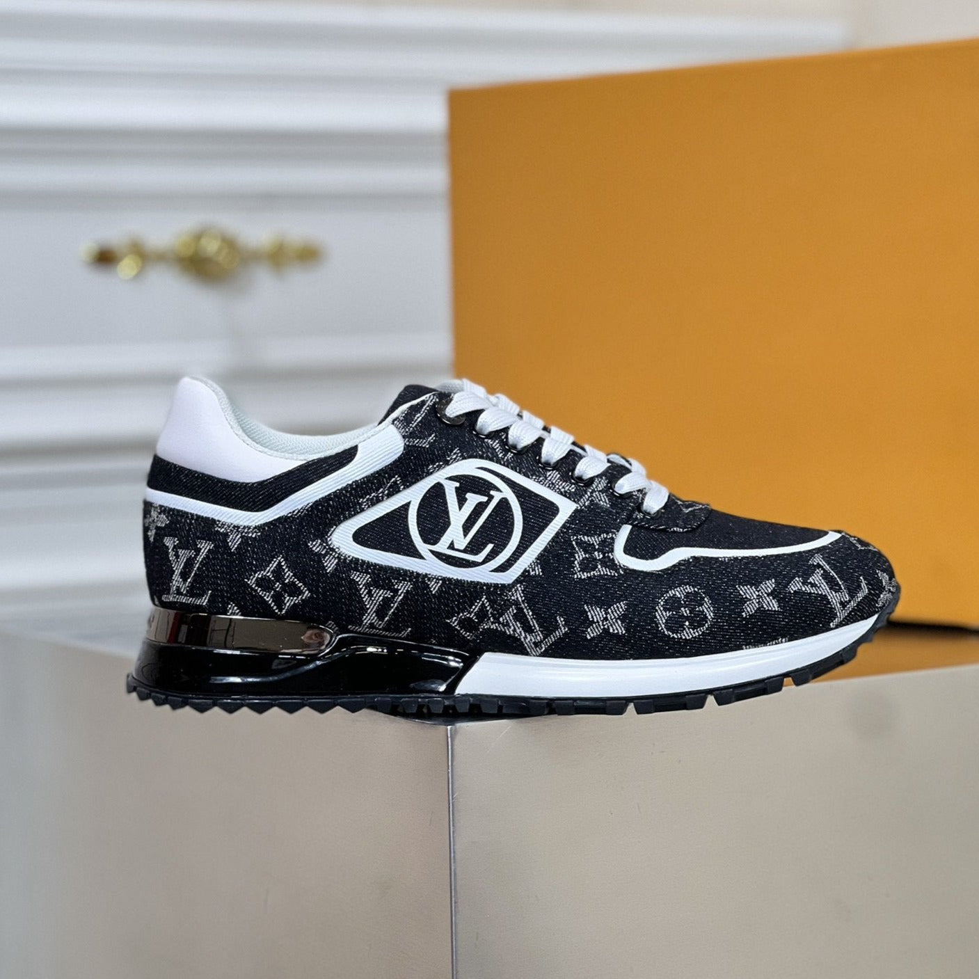 • Upper: "Imported original denim fabric, combined with LV's classic logo."