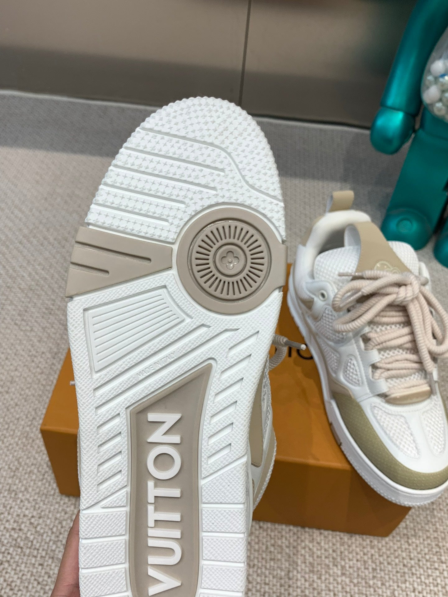 LV Skate Sneaker White Mix Beige Mesh Fabric