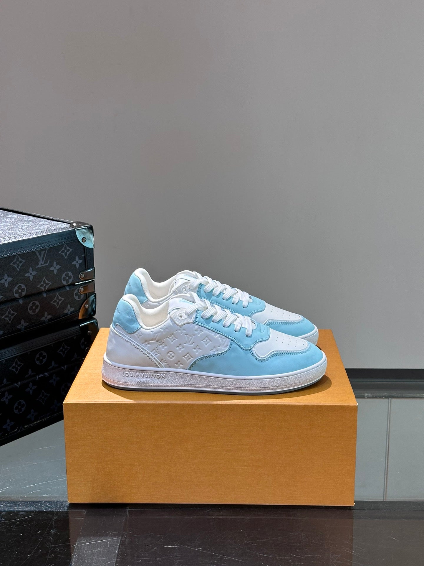 LV SNEAKER WHITE MIX BABY BLUE EMBOSSED CALFSKIN