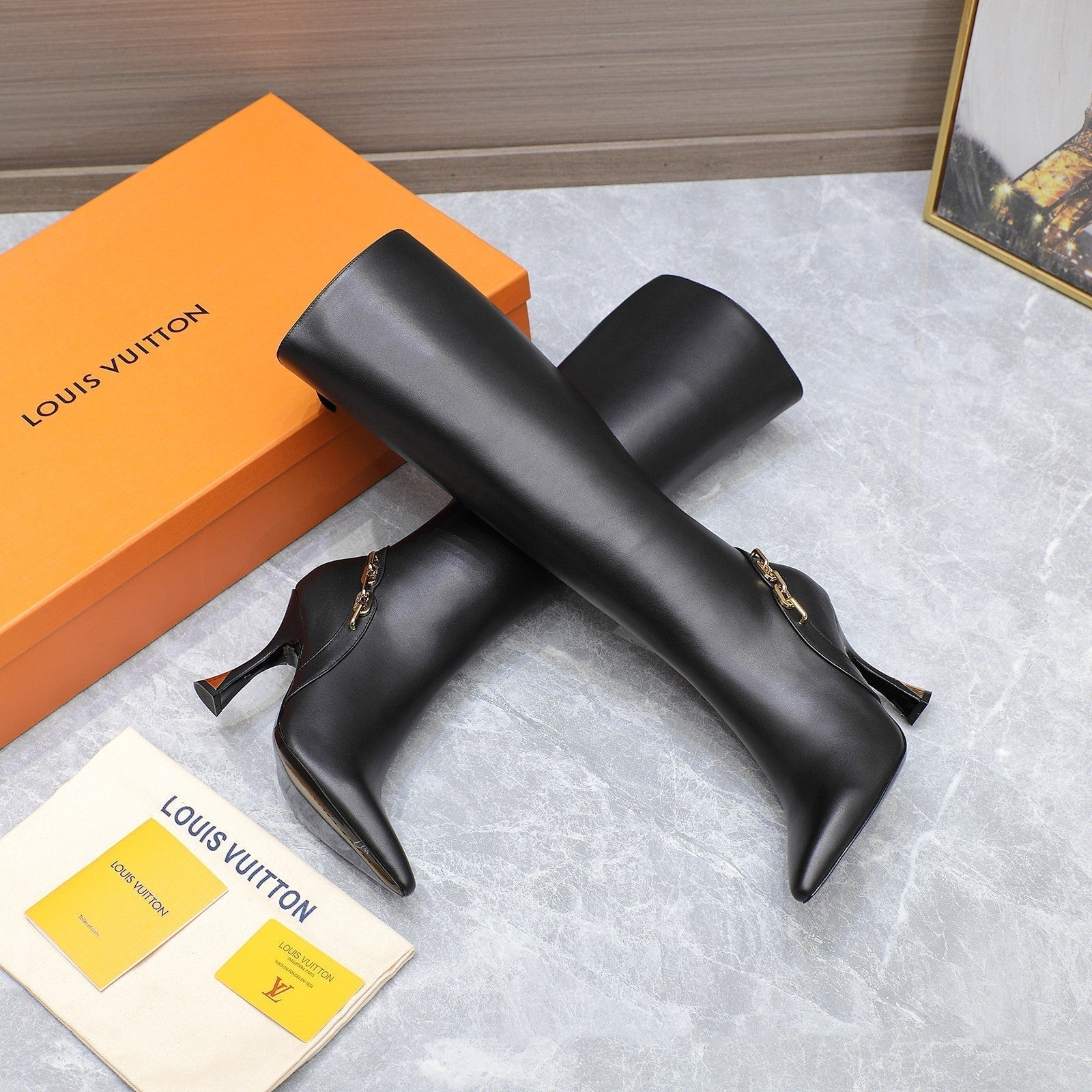 LV Sparkle High Boot 100mm Black Cowhide
