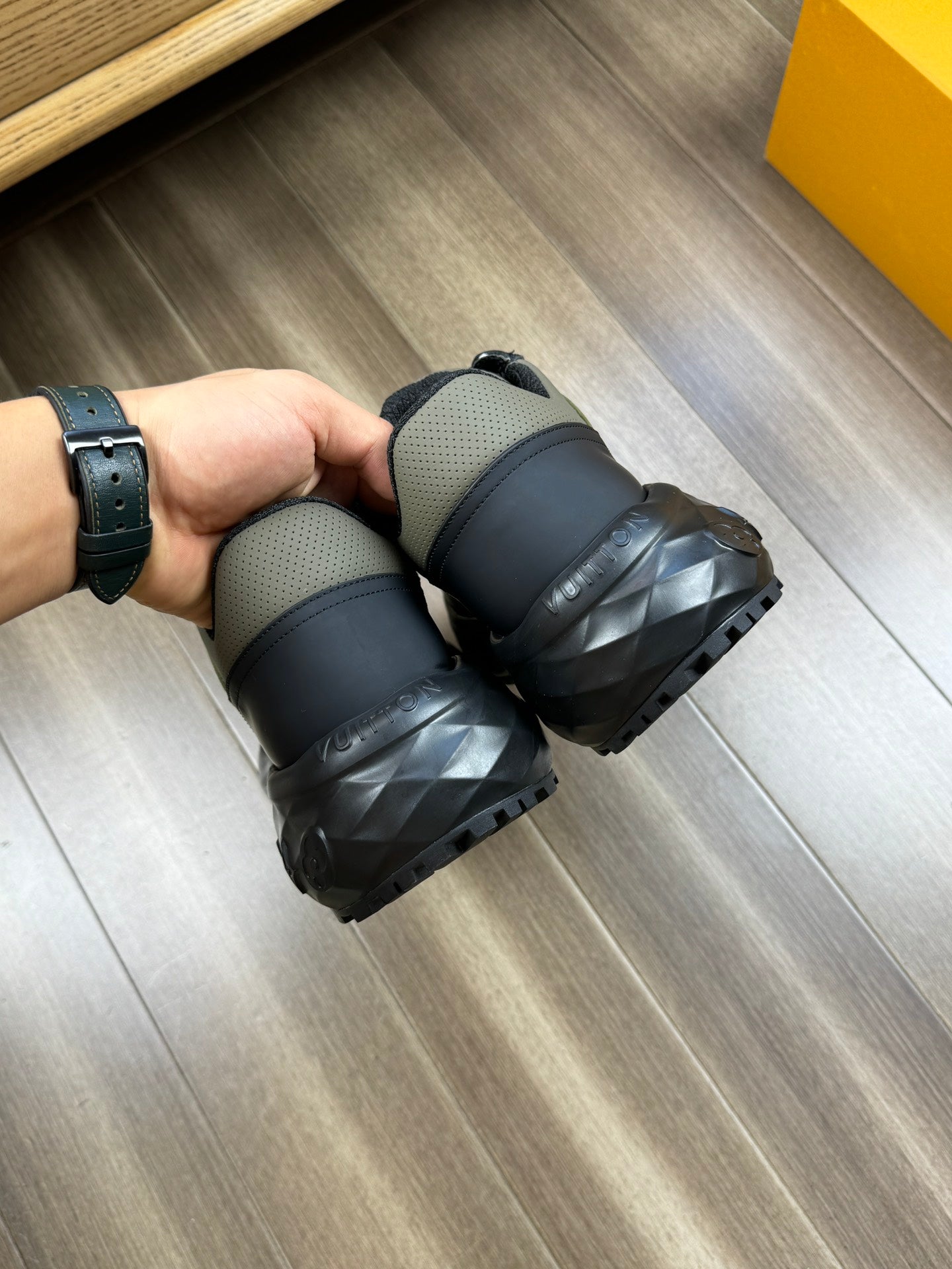 LV SPORT SNEAKER IN OLIVE GREEN MIX BLACK CALFSKIN WITH LOGO
