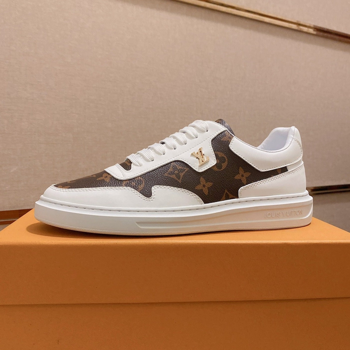 LV TRAINER IN WHITE MIX CHOCOLATE BROWN CALFSKIN