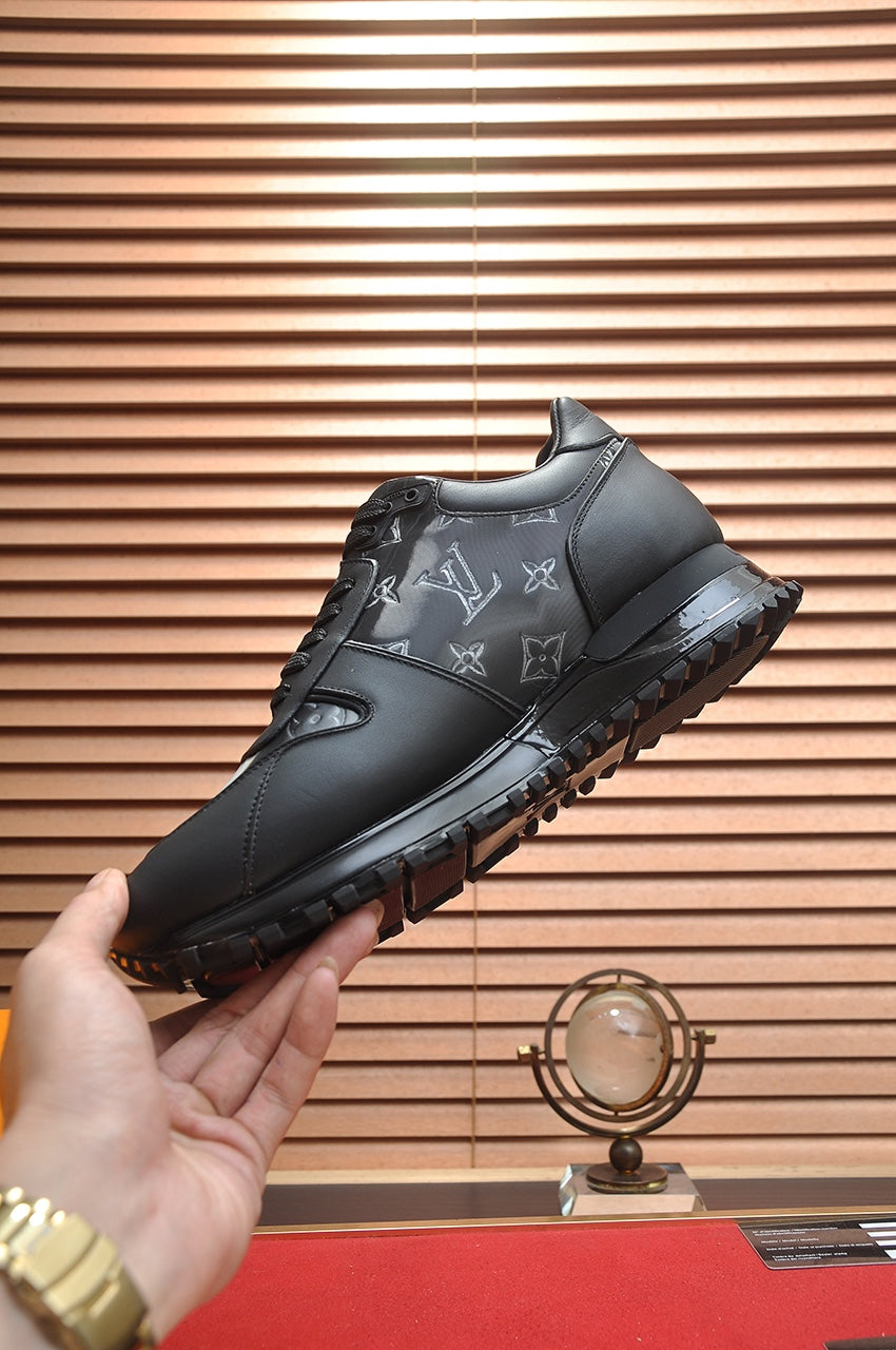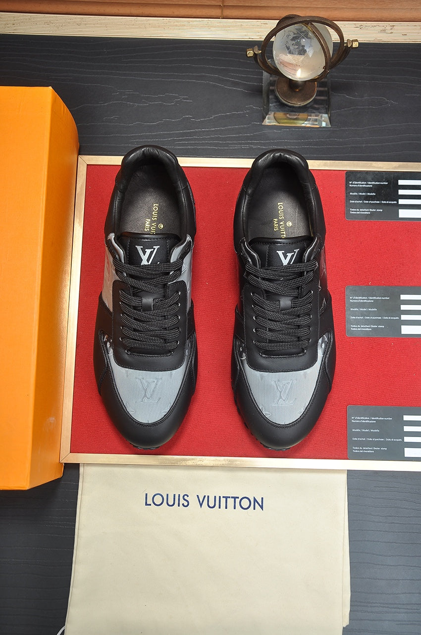 LV TRAINER SHOES IN BLACK MIX GREY EMBOSSED LAMBSKIN