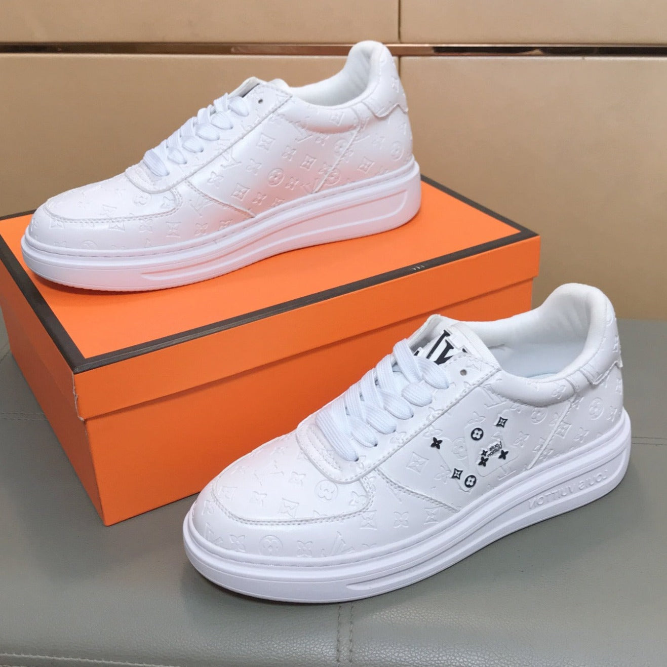 LV TRAINER SHOES IN WHITE CALFSKIN