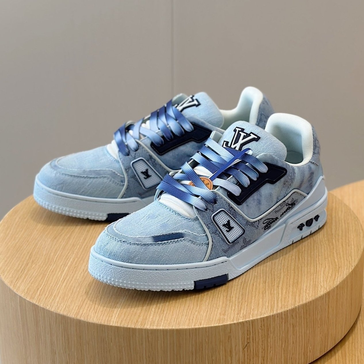 LV TRAINER SNEAKER LIGHT BLUE MONOGRAM DENIM