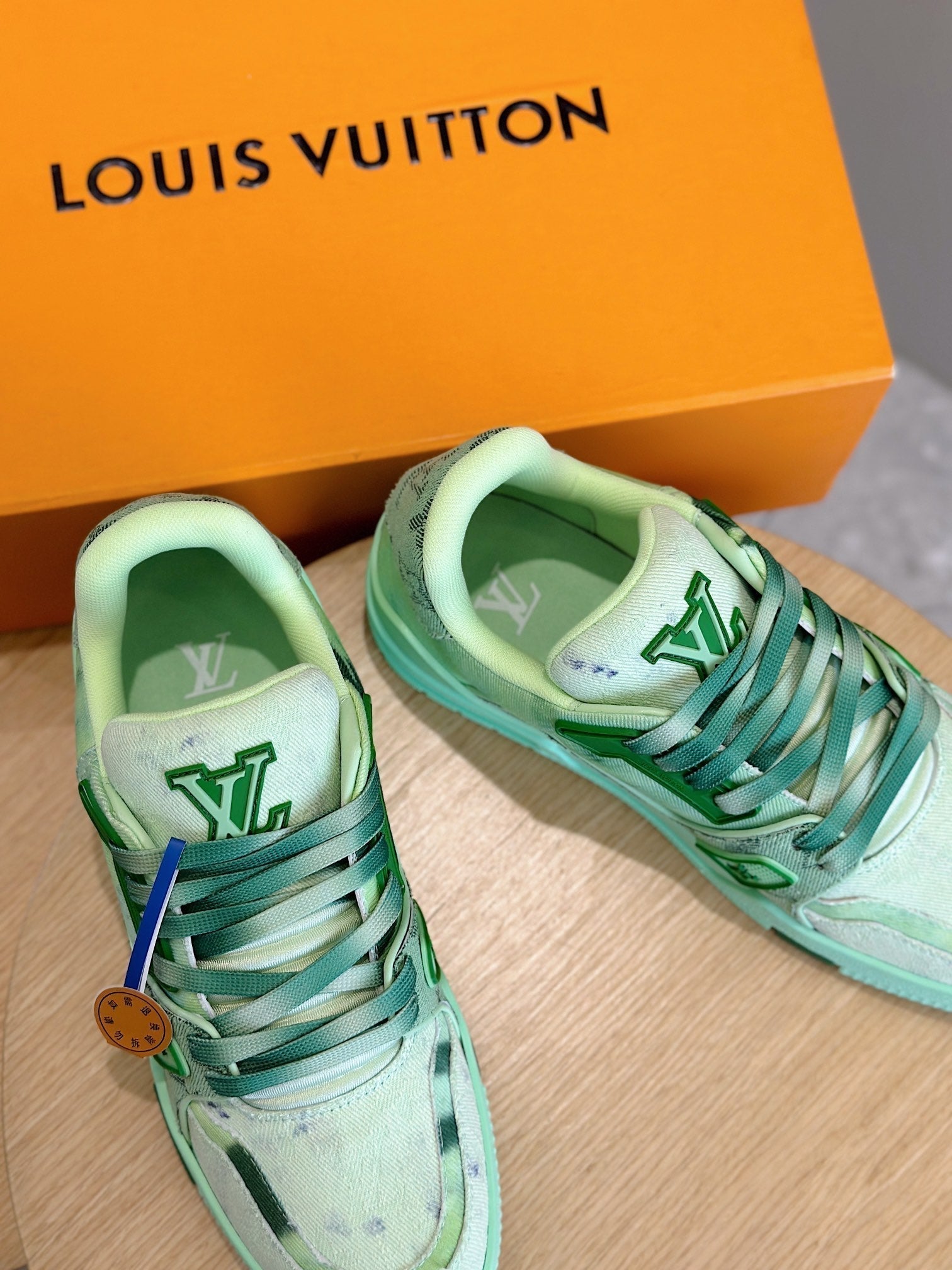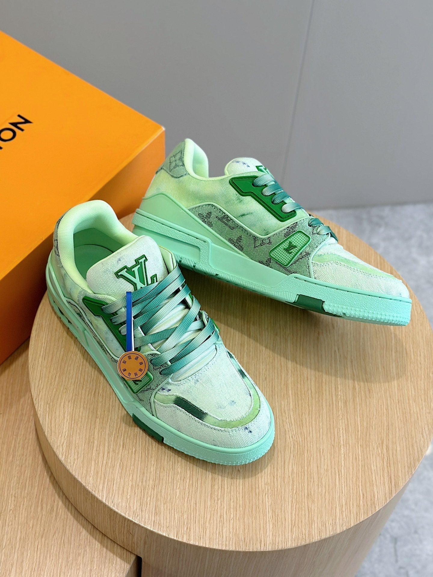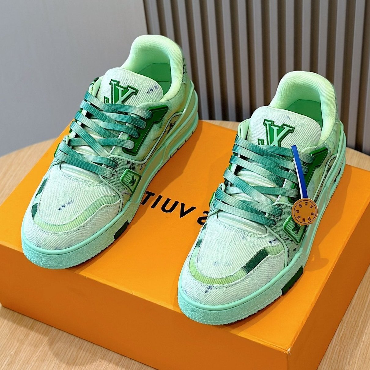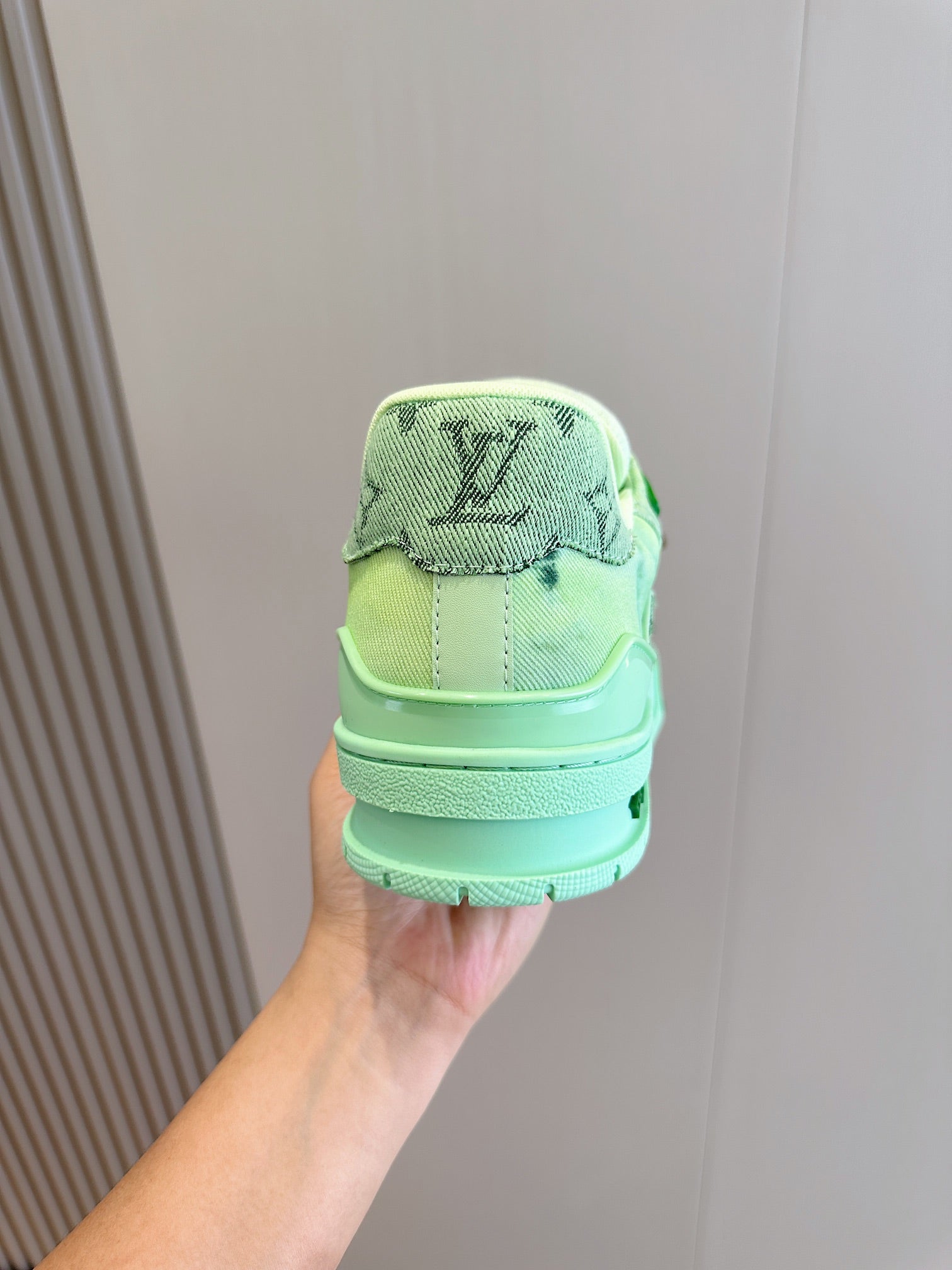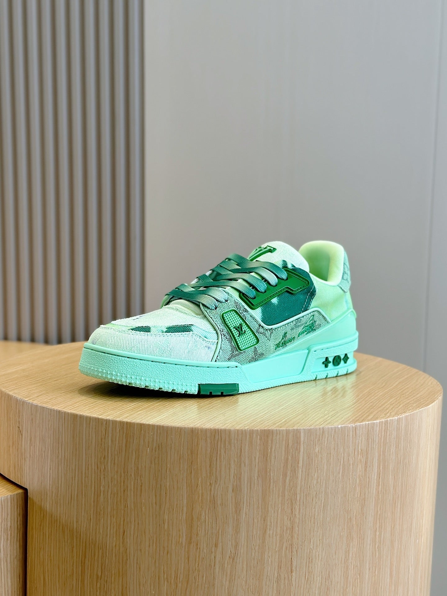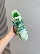 LV TRAINER SNEAKER LIGHT GREEN MONOGRAM DENIM AND CALFSKIN