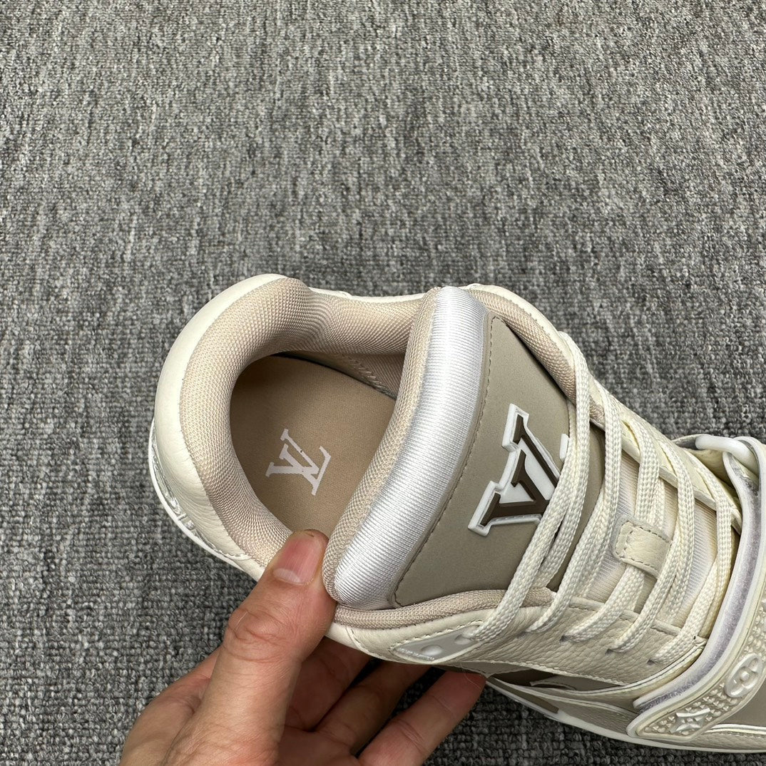 LV TRAINER WHITE MIX GREY MONOGRAM CALFSKIN