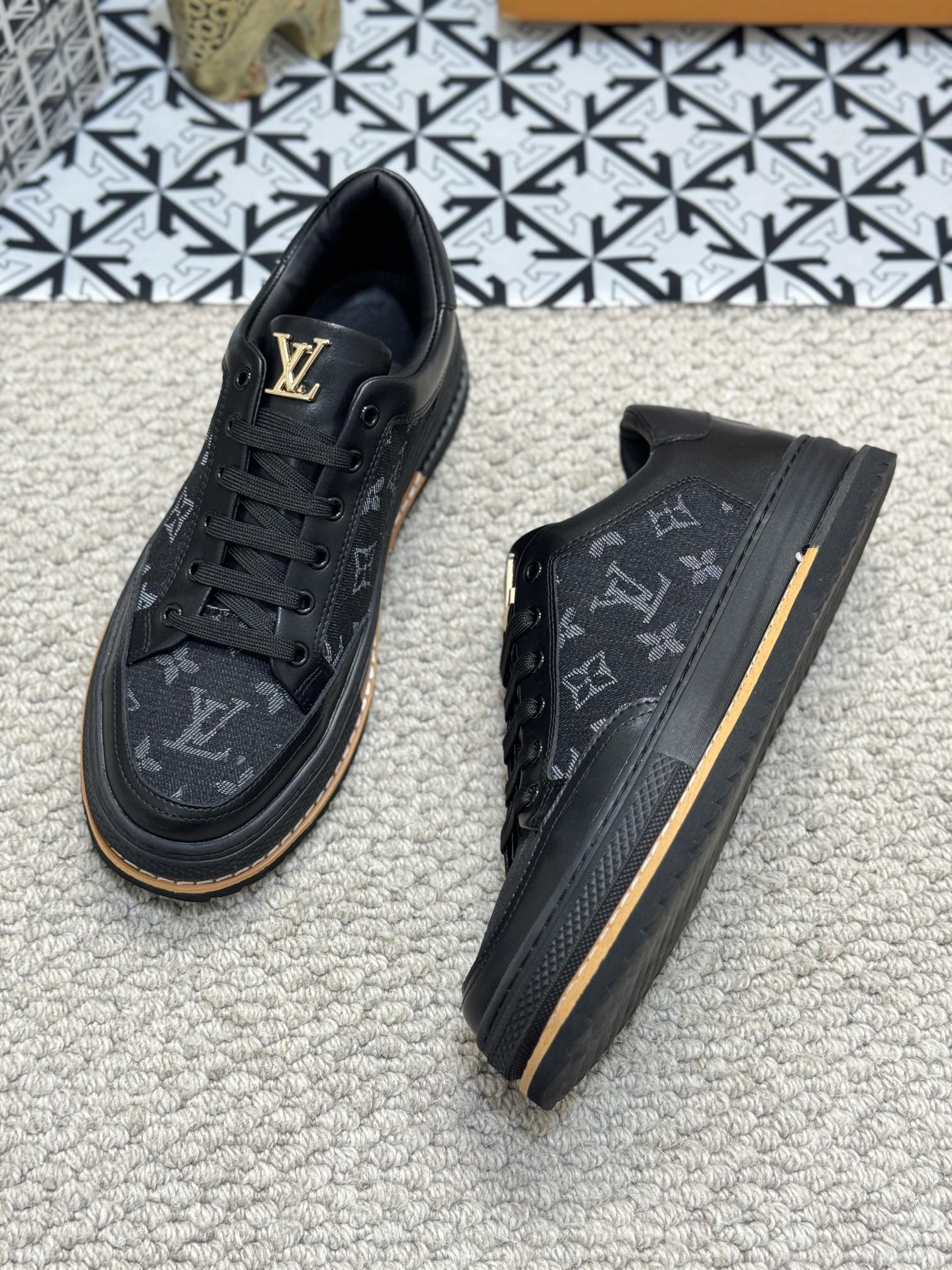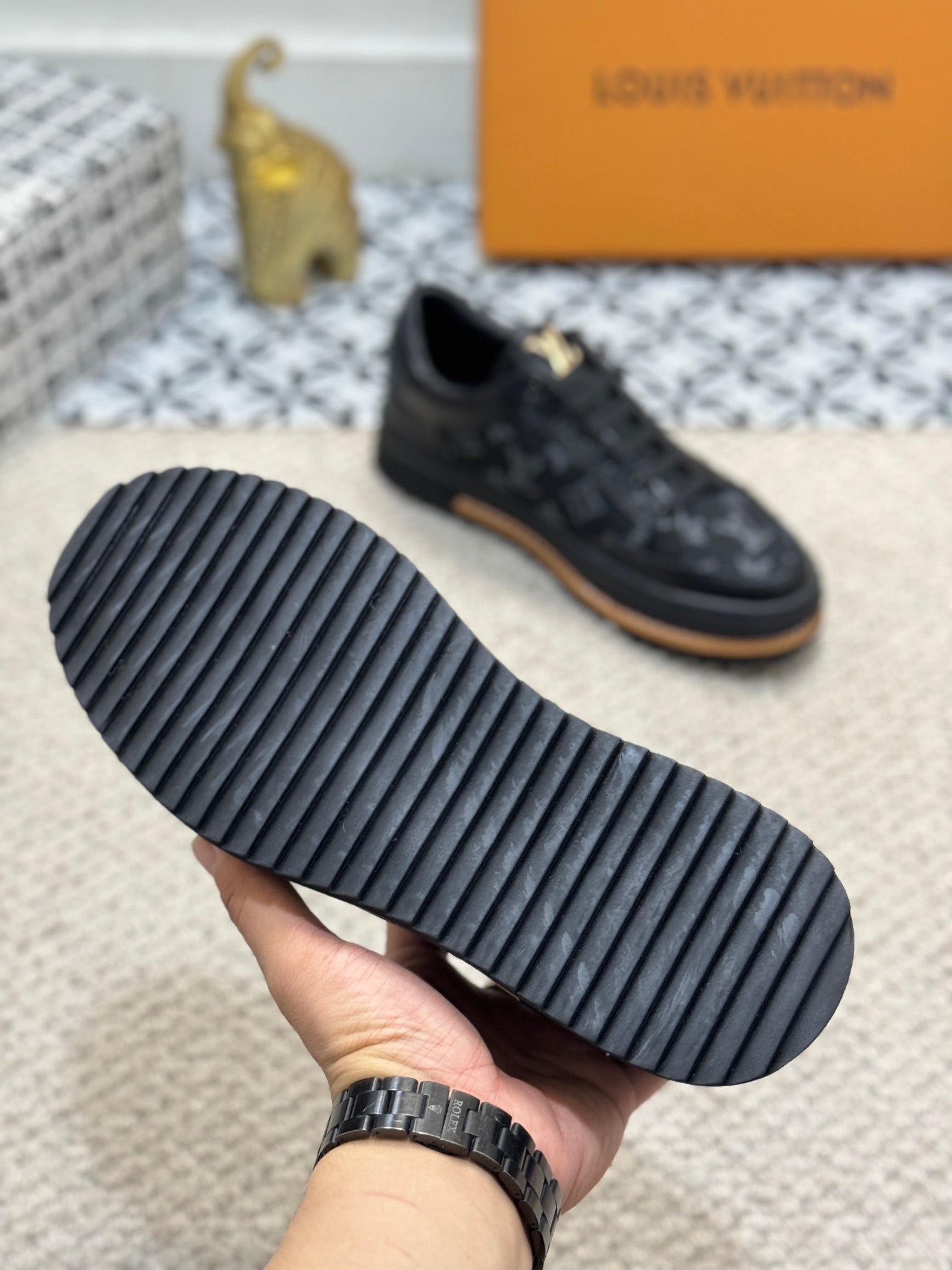 LV TRAINERS IN BLACK CALFSKIN AND JACQUARD
