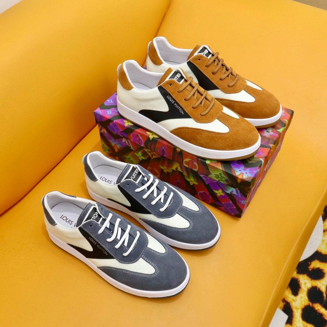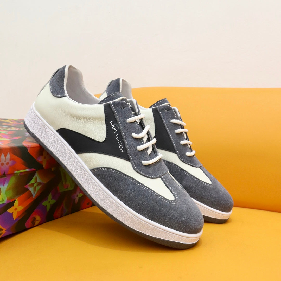 LV TRAINERS IN GREY SUEDE AND WHITE CALFSKIN