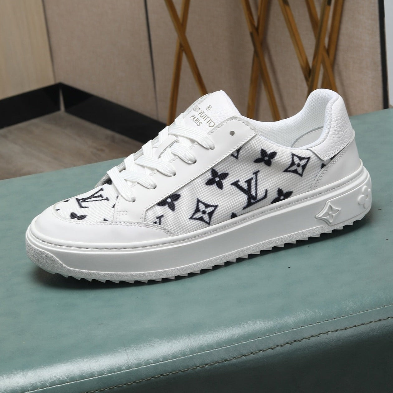 LV TRAINERS IN WHITE CALFSKIN AND MONOGRAM CANVAS