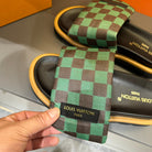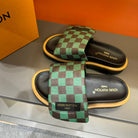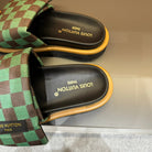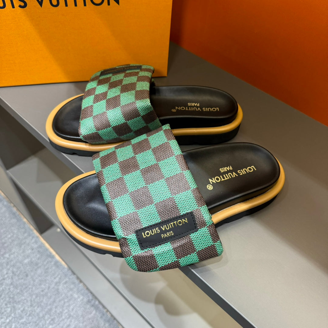 LV VELCRO SLIPPERS GREEN MIX BROWN DAMIER MONOGRAM CALFSKIN