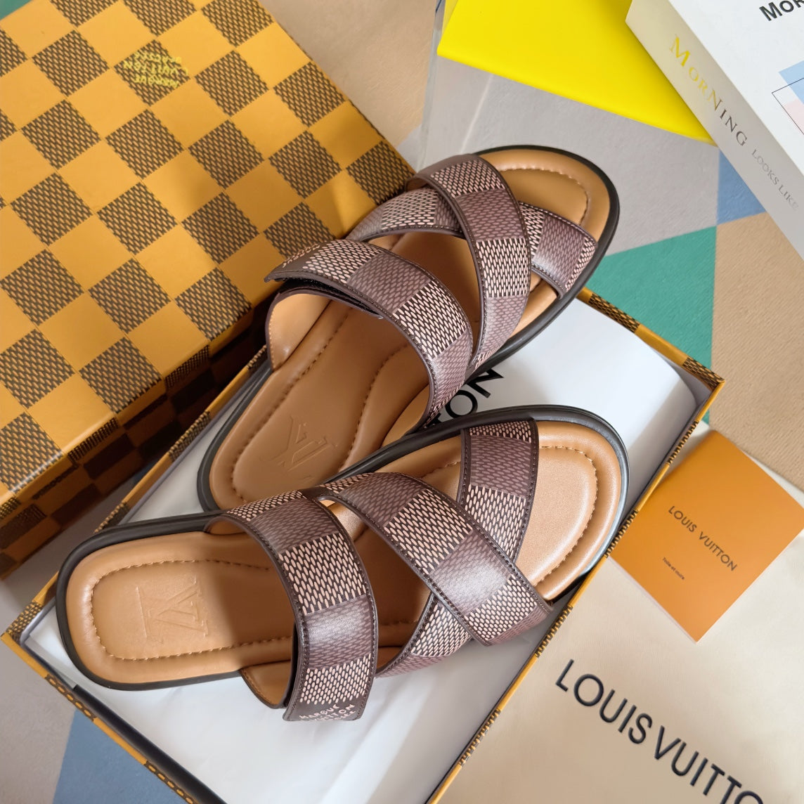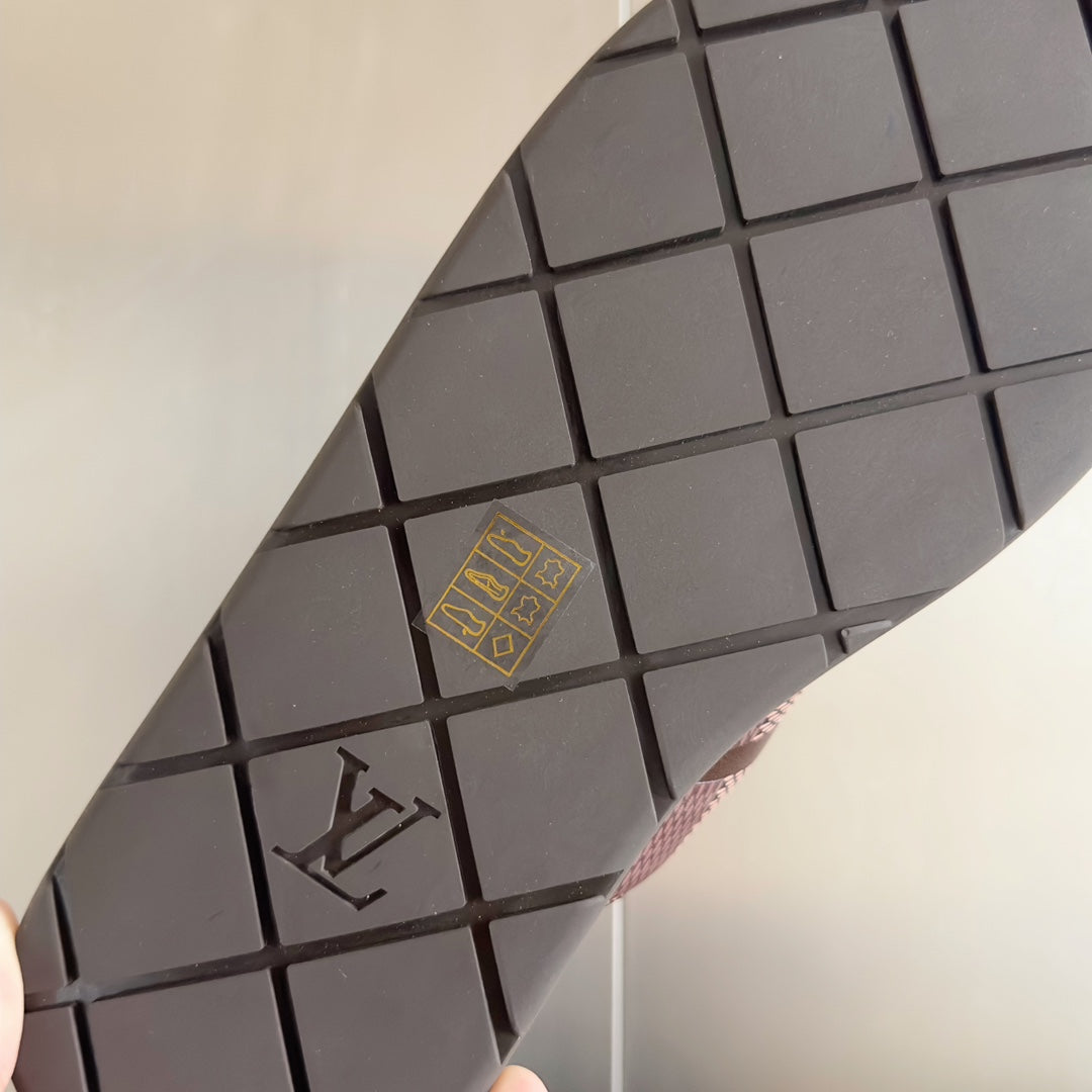 • Premium LV men's slippers, synchronizing with the 2024 early autumn runway collection. The slippers feature a high-quality fabric upper and an original, exclusive comfort sole, ensuring exceptional comfort. These are original factory-followed products.