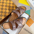 LV VENICE MULE SLIDE SANDALS MONOGRAM CARAMEL BROWN