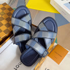 • Premium LV men's slippers, synchronizing with the 2024 early autumn runway collection. The slippers feature a high-quality fabric upper and an original, exclusive comfort sole, ensuring exceptional comfort. These are original factory-followed products.