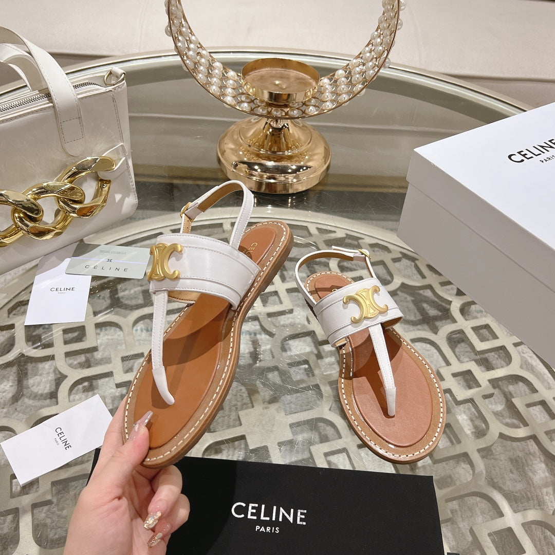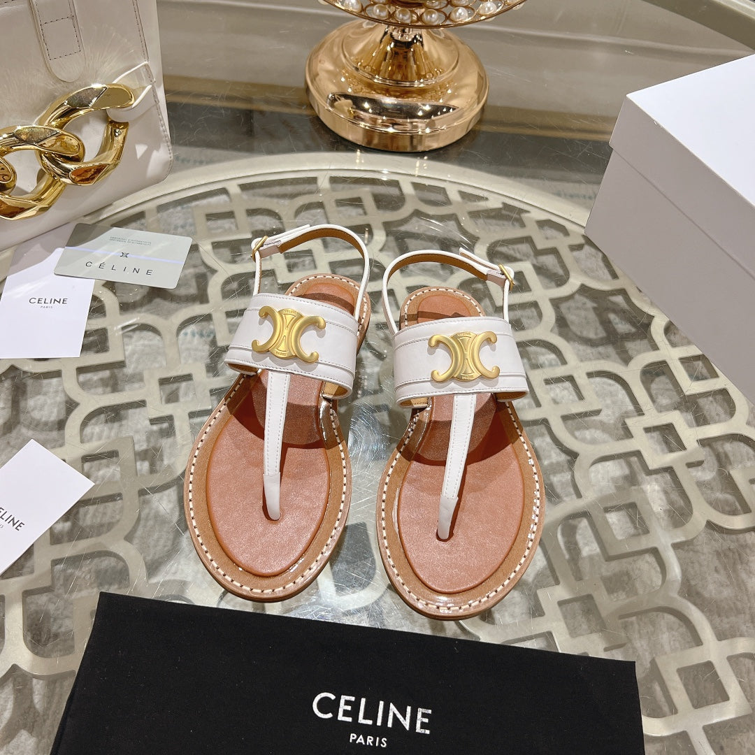 LYMPIA TRIOMPHE THONG IN CALFSKIN WHITE