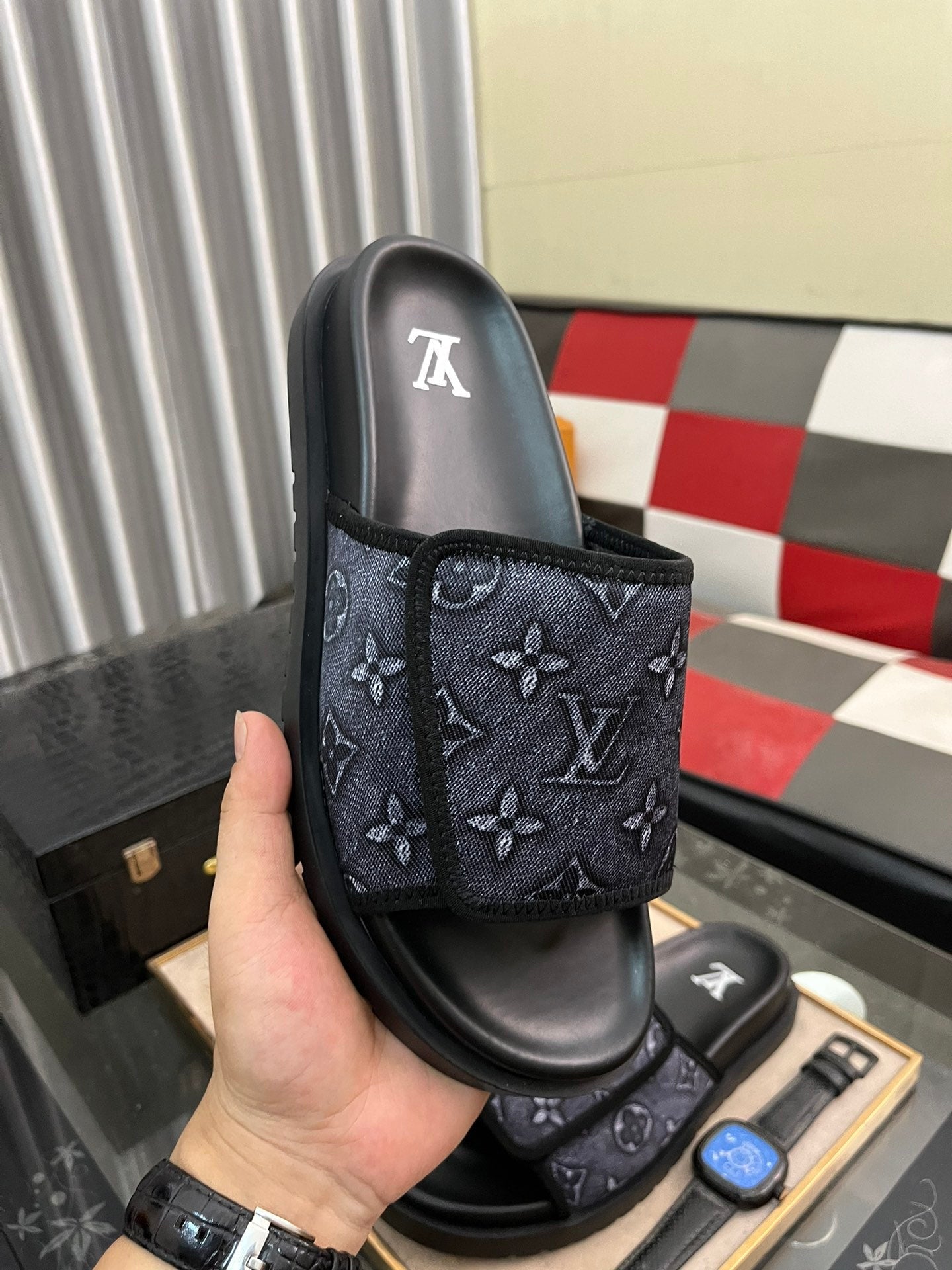 MIAMI MULE IN CHARCOAL GREY MONOGRAM JACQUARD