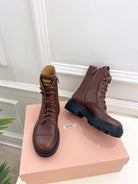 Miu Laced Booties Brown Chocolate Calfskin
