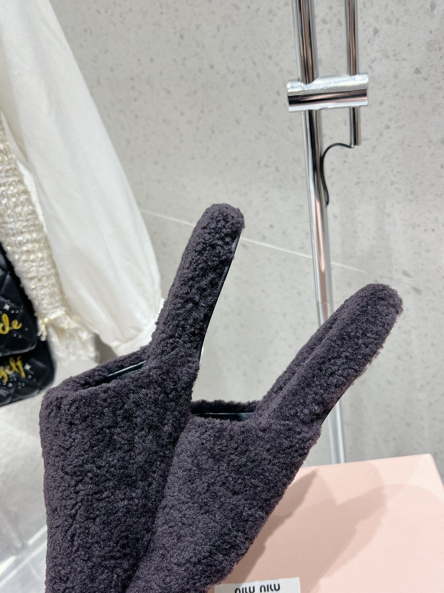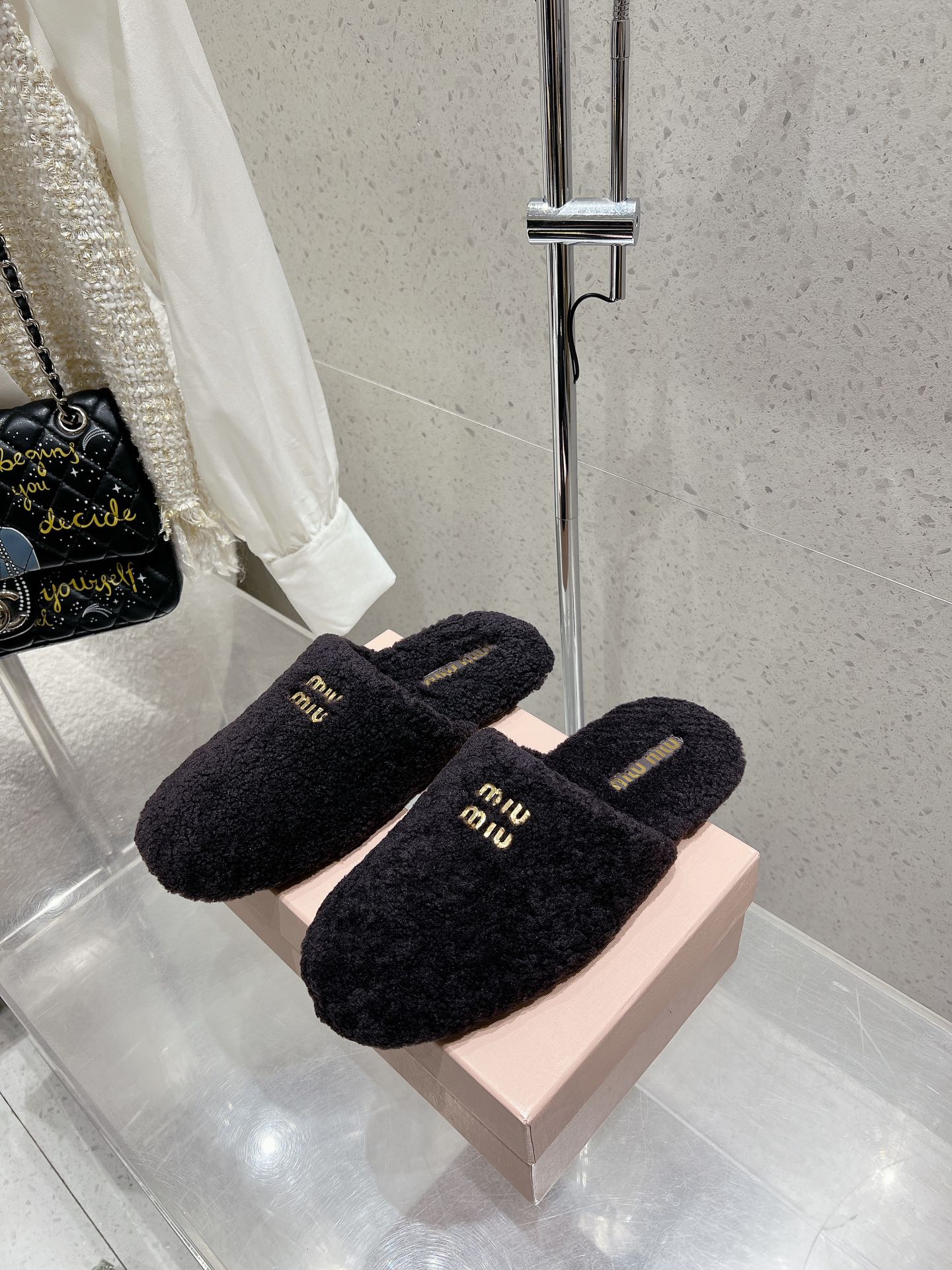 Miu Slippers Black Wool Fabric