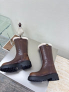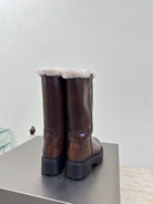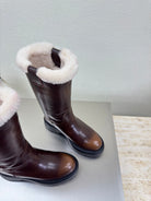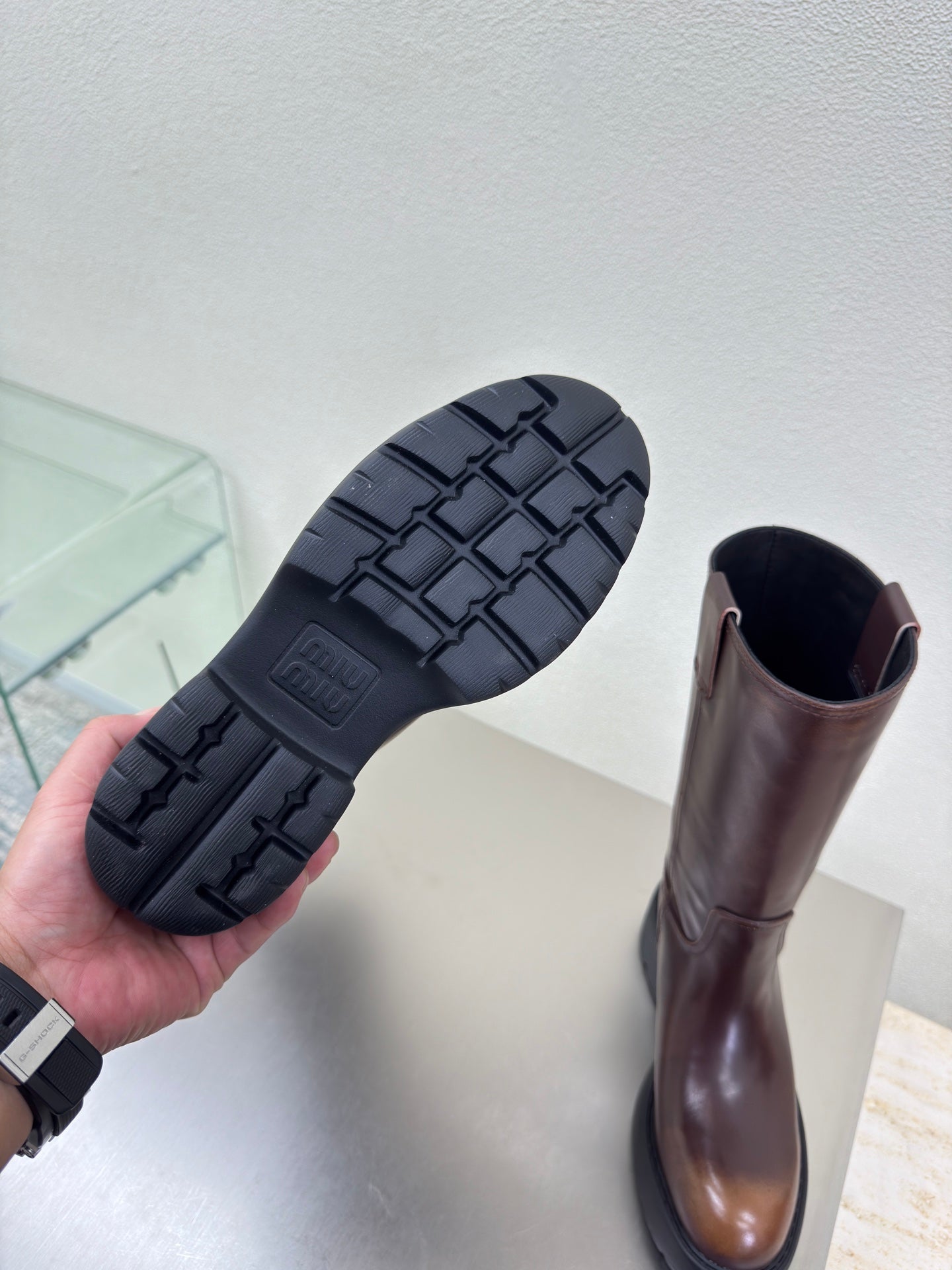 MiuMiu 25 platform boots brown calfskin wool 522430