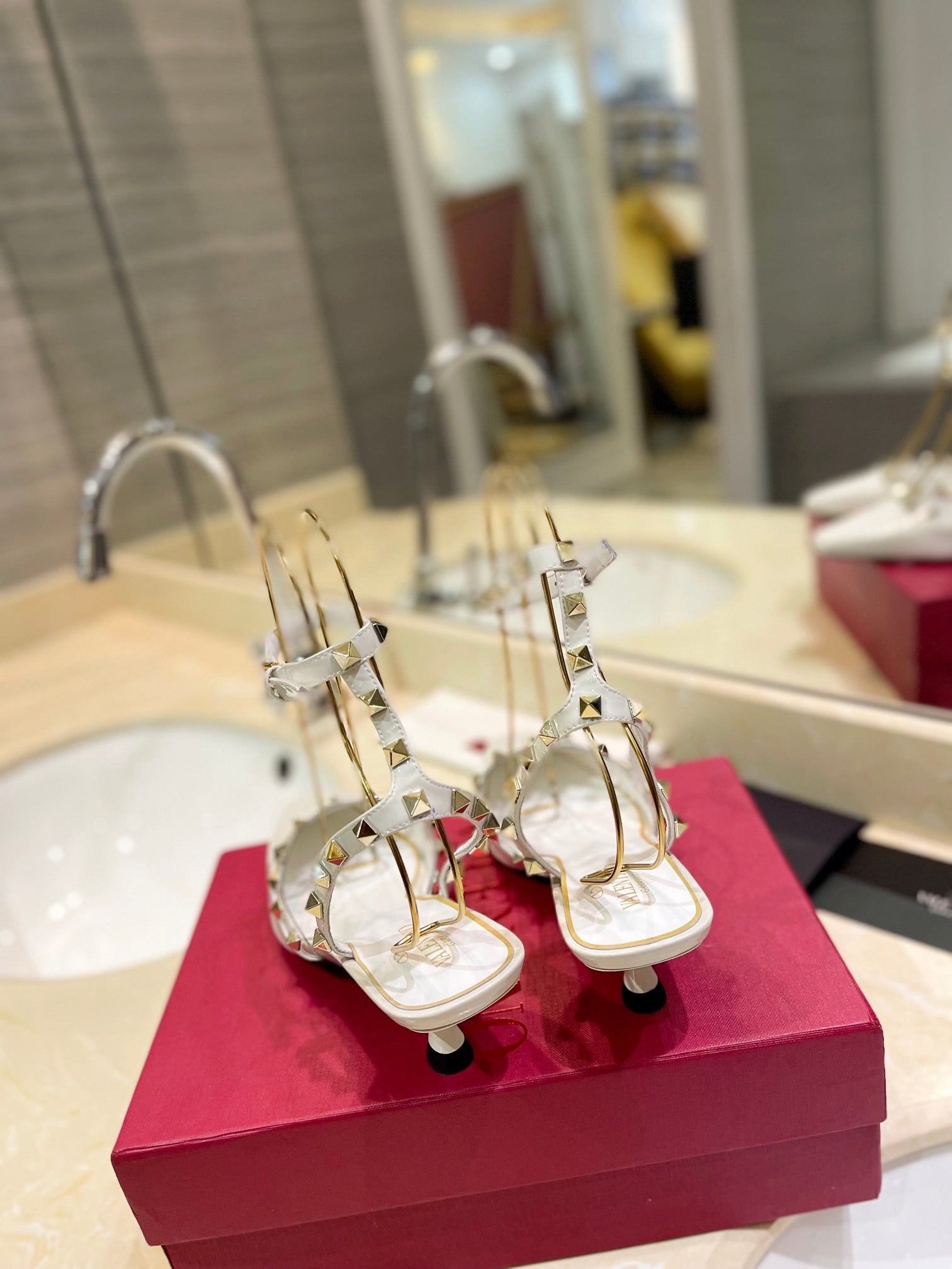 ROCKSTUD SLINGBACK IN WHITE CALFSKIN 50MM