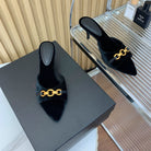 SL CHAIN ATTACH HEELED MULES BLACK VELVET