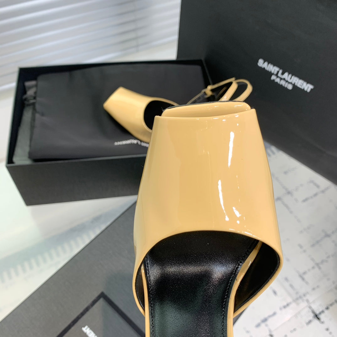 SL FISH MOUTH SANDAL PUMP FLAX POLISHED CALFSKIN