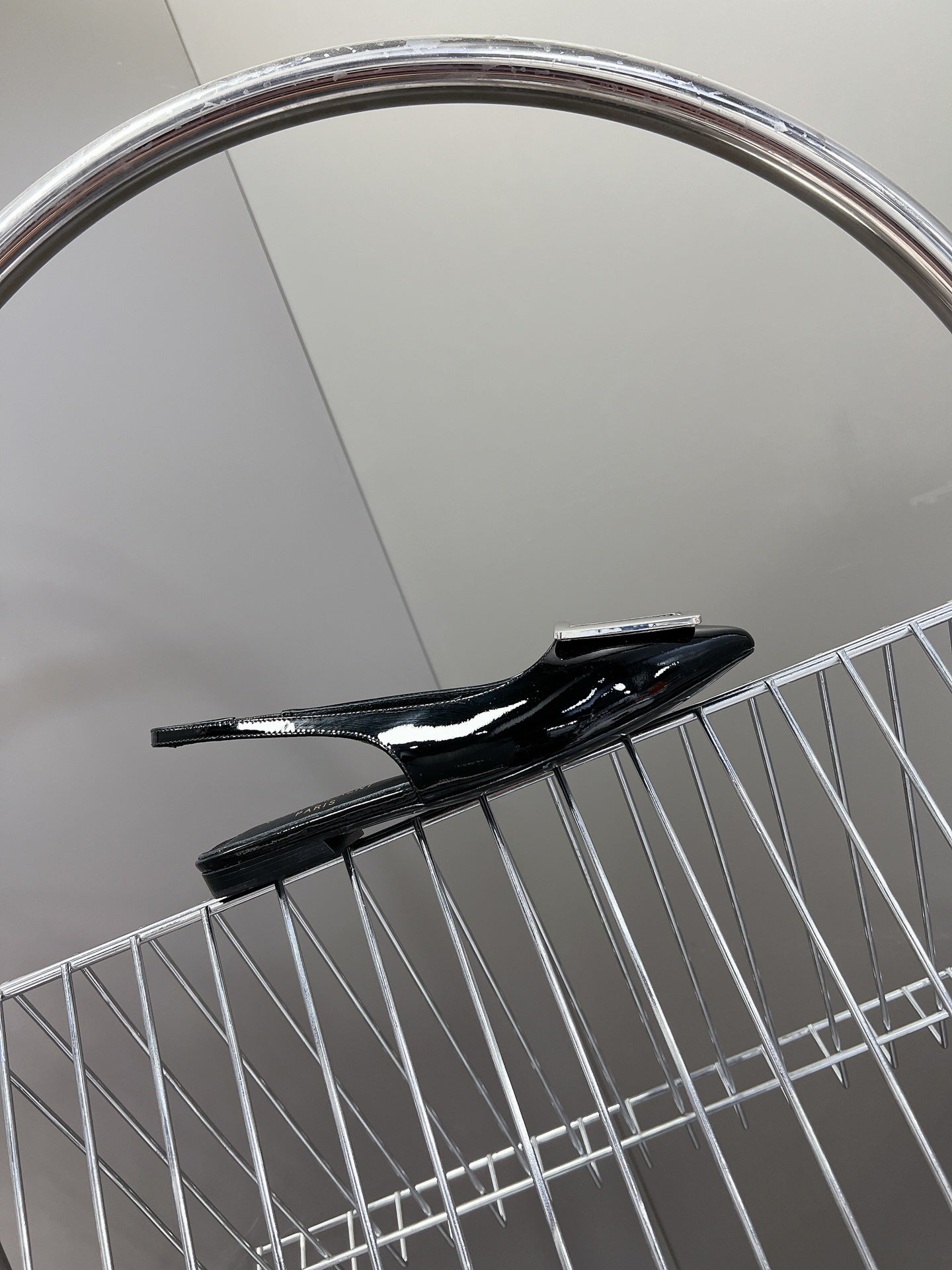 SL SQUARE BUCKLE SLINGBACK BLACK POLISHED CALFSKIN