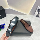 SL SQUARE TOE FLAT MULES BROWN SATIN