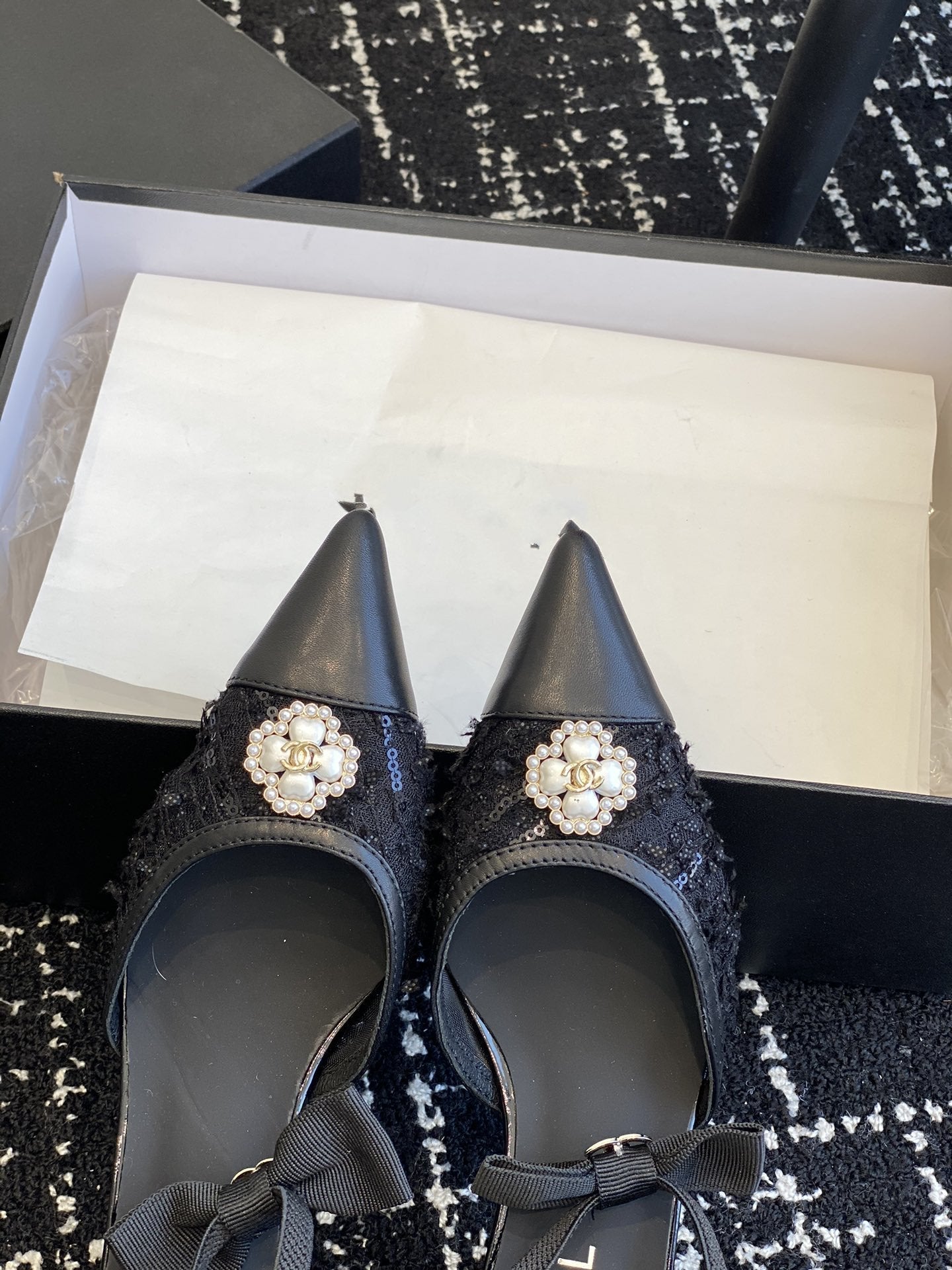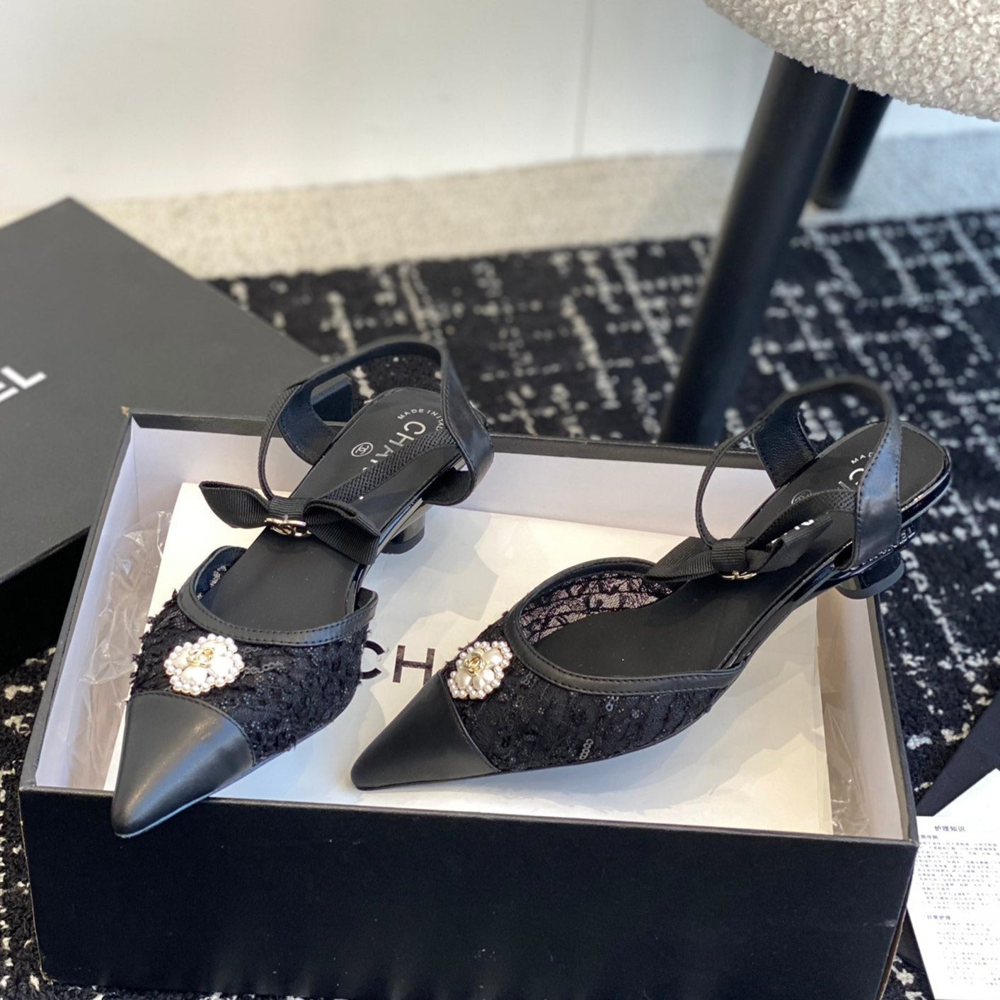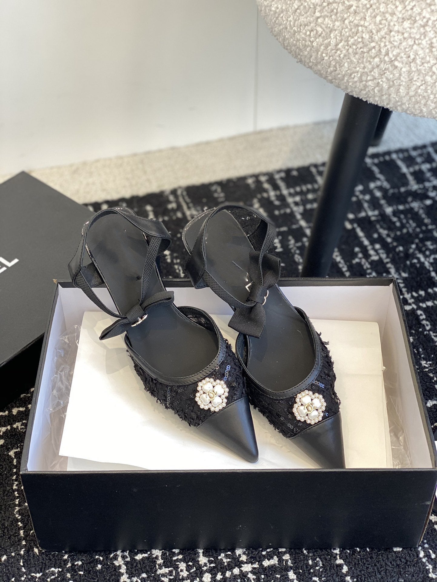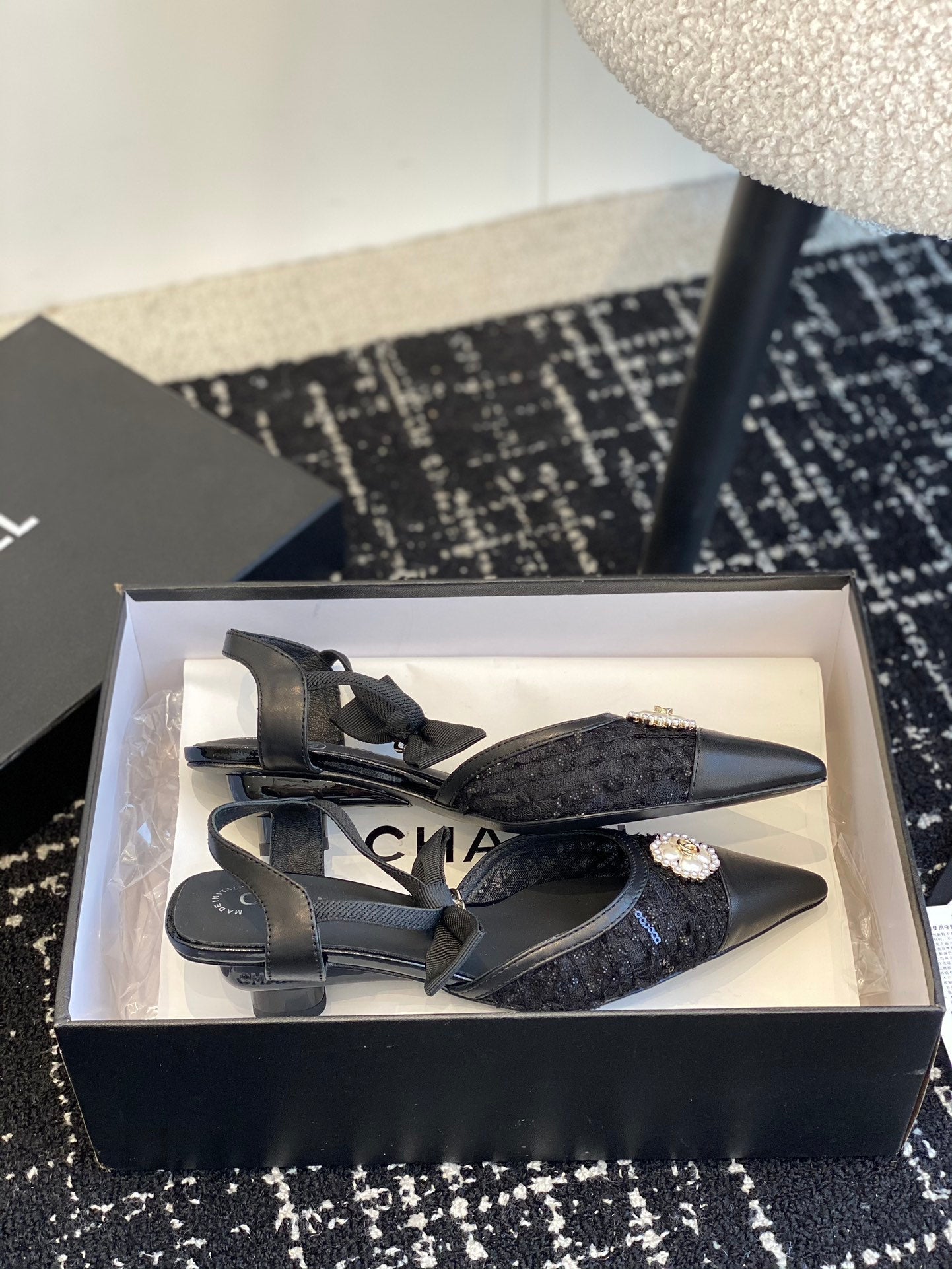 slingbacks 45 black tweed lambskin