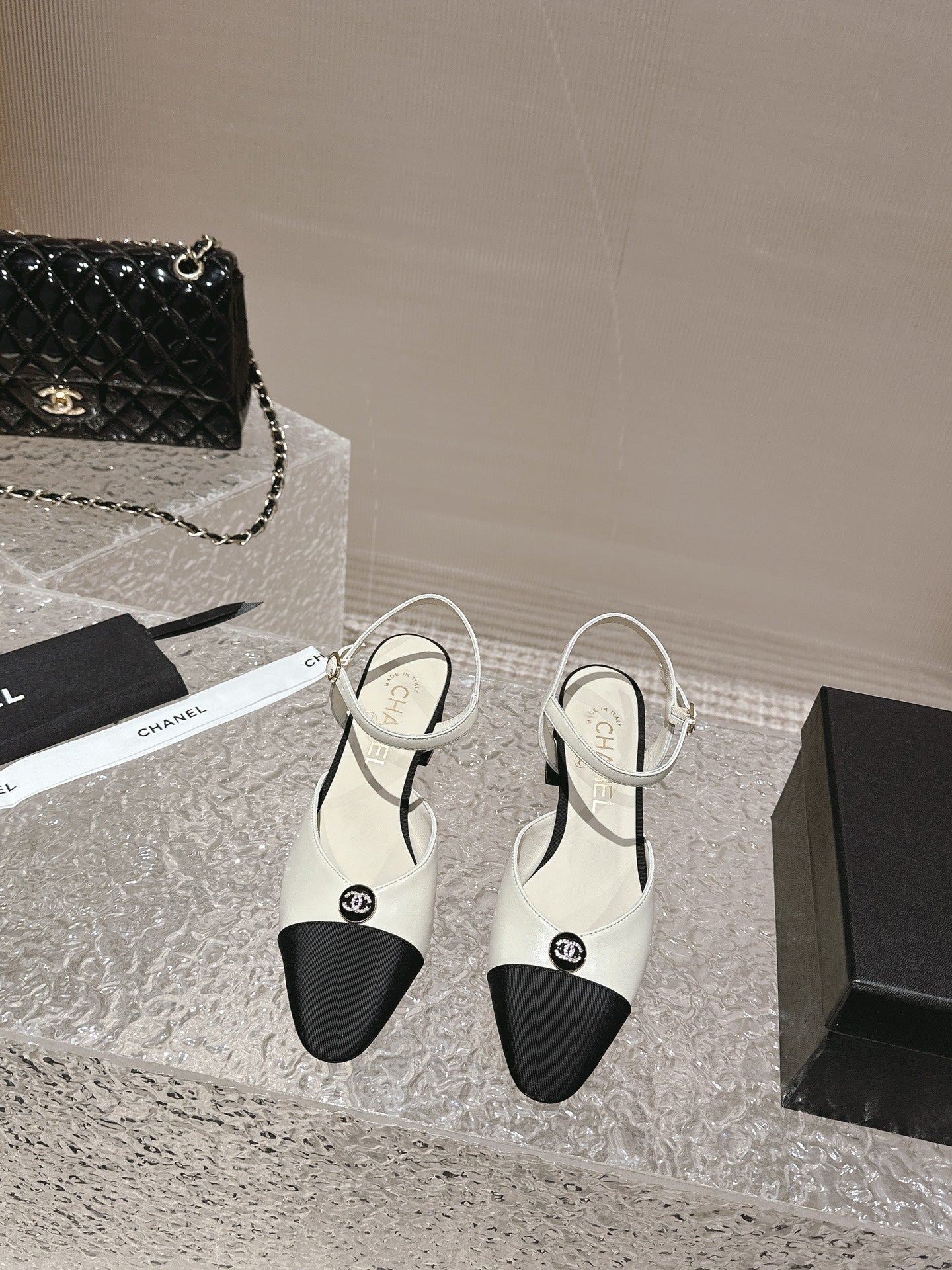 slingbacks 45 white black lambskin grosgrain