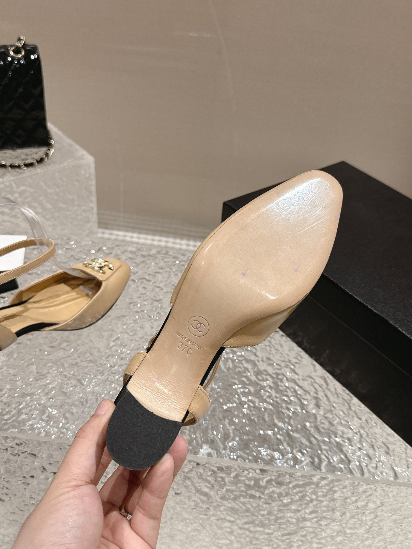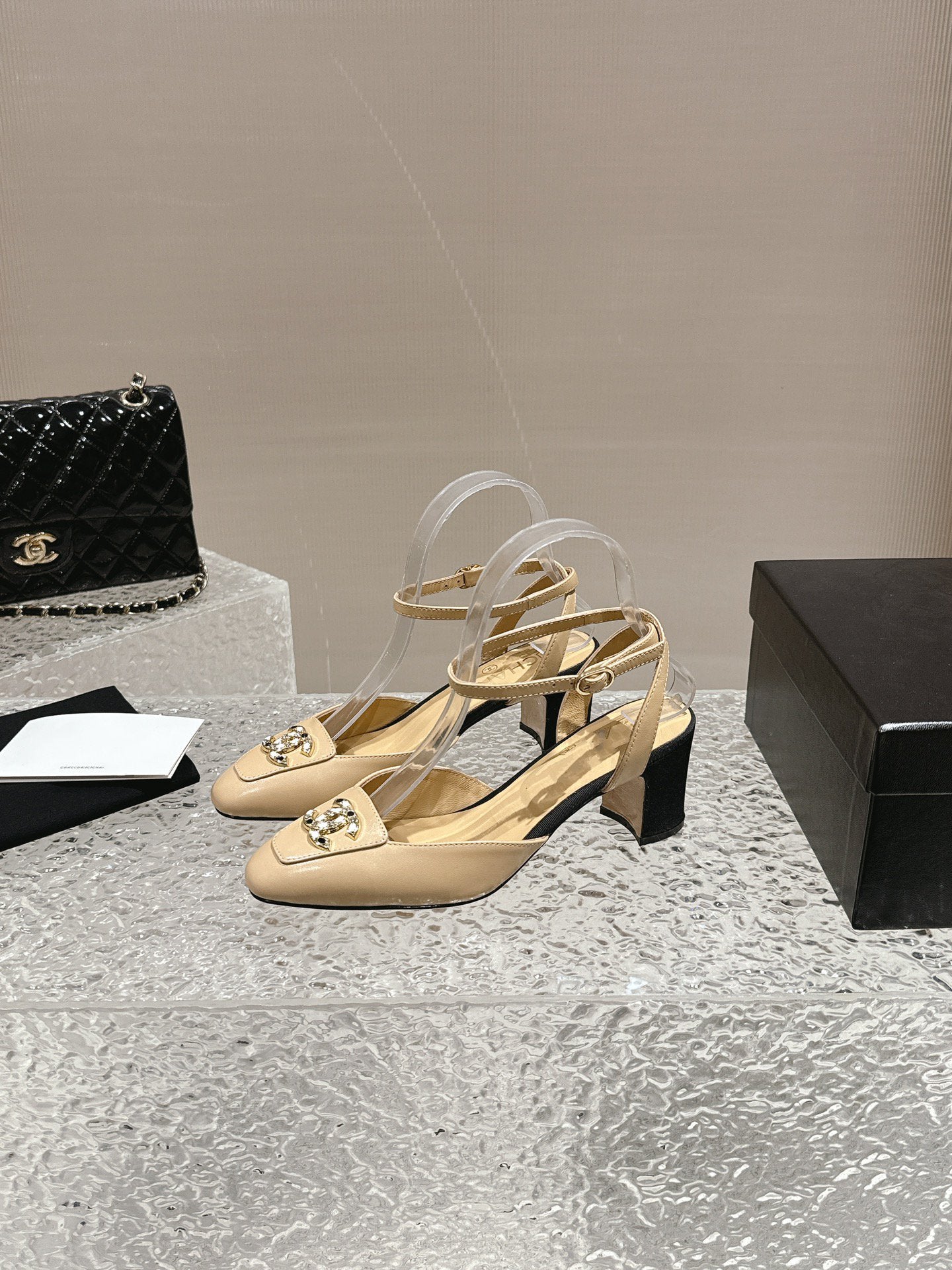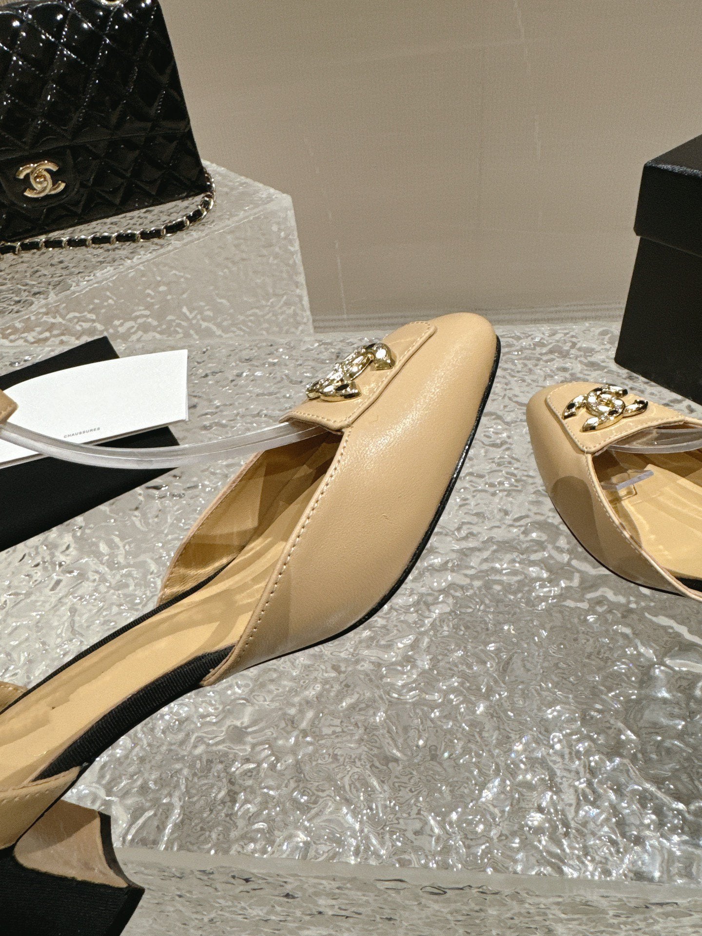 slingbacks 60 beige black lambskin cc logo