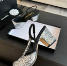 slingbacks 65 black calfskin grosgrain silver sequin