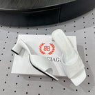 SQUARE-TOE MEDIUM HEEL MULES IN WHITE CALFSKIN LOGO EMBOSSED
