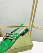 STRAPPY FLAT SLINGBACK IN EMERALD GREEN GLOSSY CALFSKIN