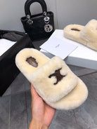 THICK-SOLED SLIPPER IN BEIGE CREAM LAMB FUR