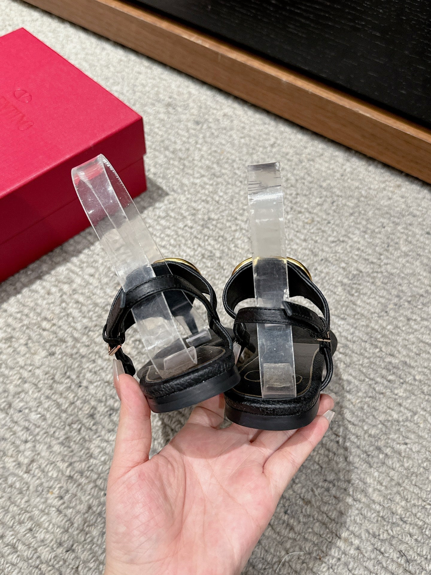 THONG SANDAL IN BLACK CALFSKIN WITH GOLD LOGO