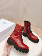 TRIOMPHE RANGERS MID LACE-UP BOOT IN CHERRY RED CALFSKIN