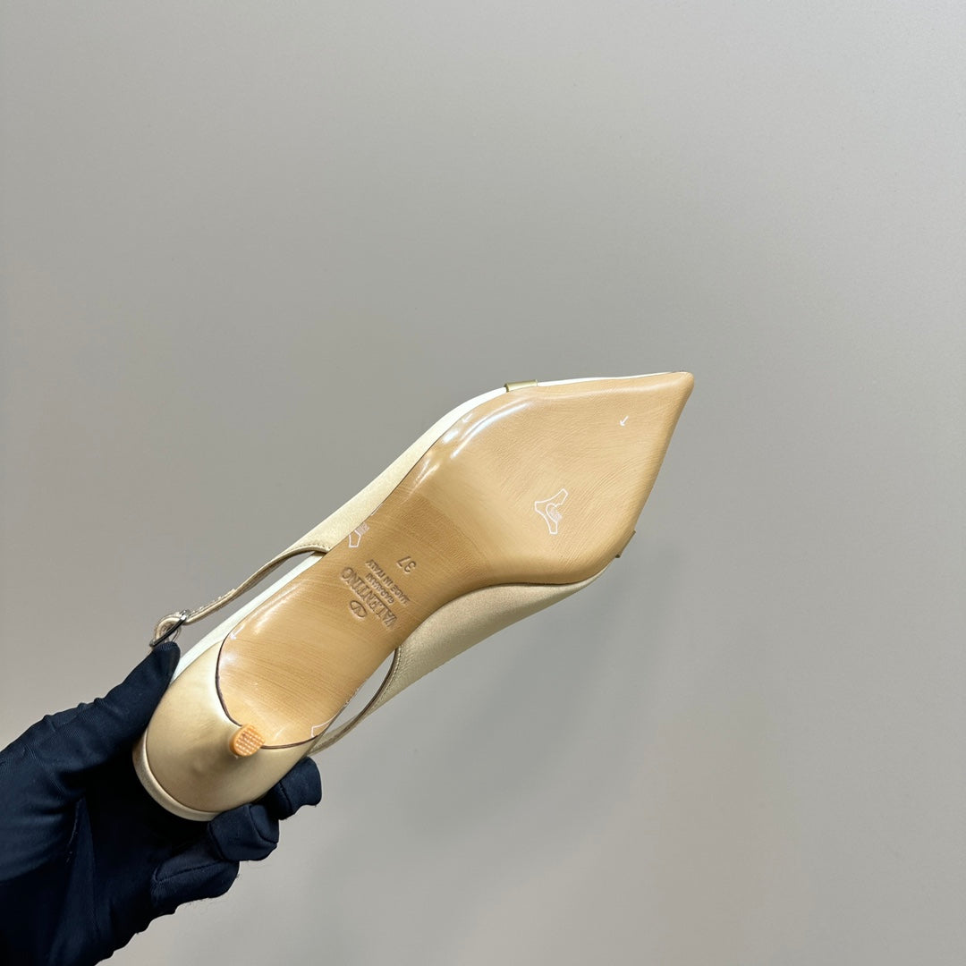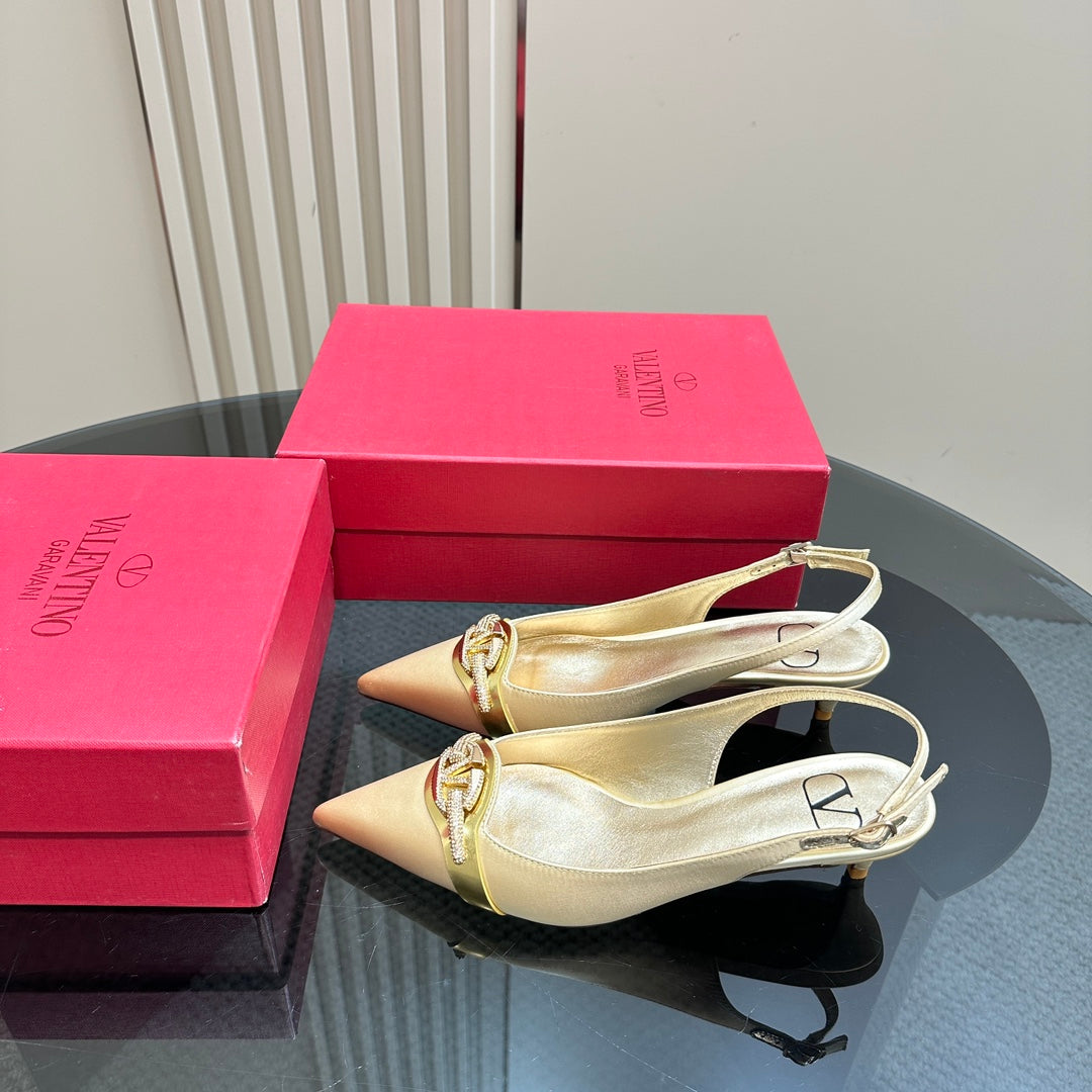 Valentino Slingback Pump 40mm In Beige Mix Gold Lambskin 999007