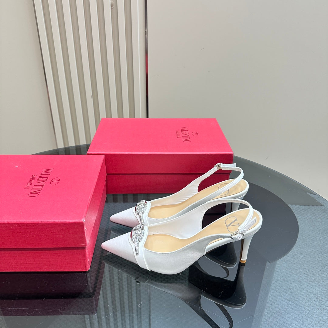 Valentino Slingback Pump 80mm In White Mix Dark Beige Lambskin 999020