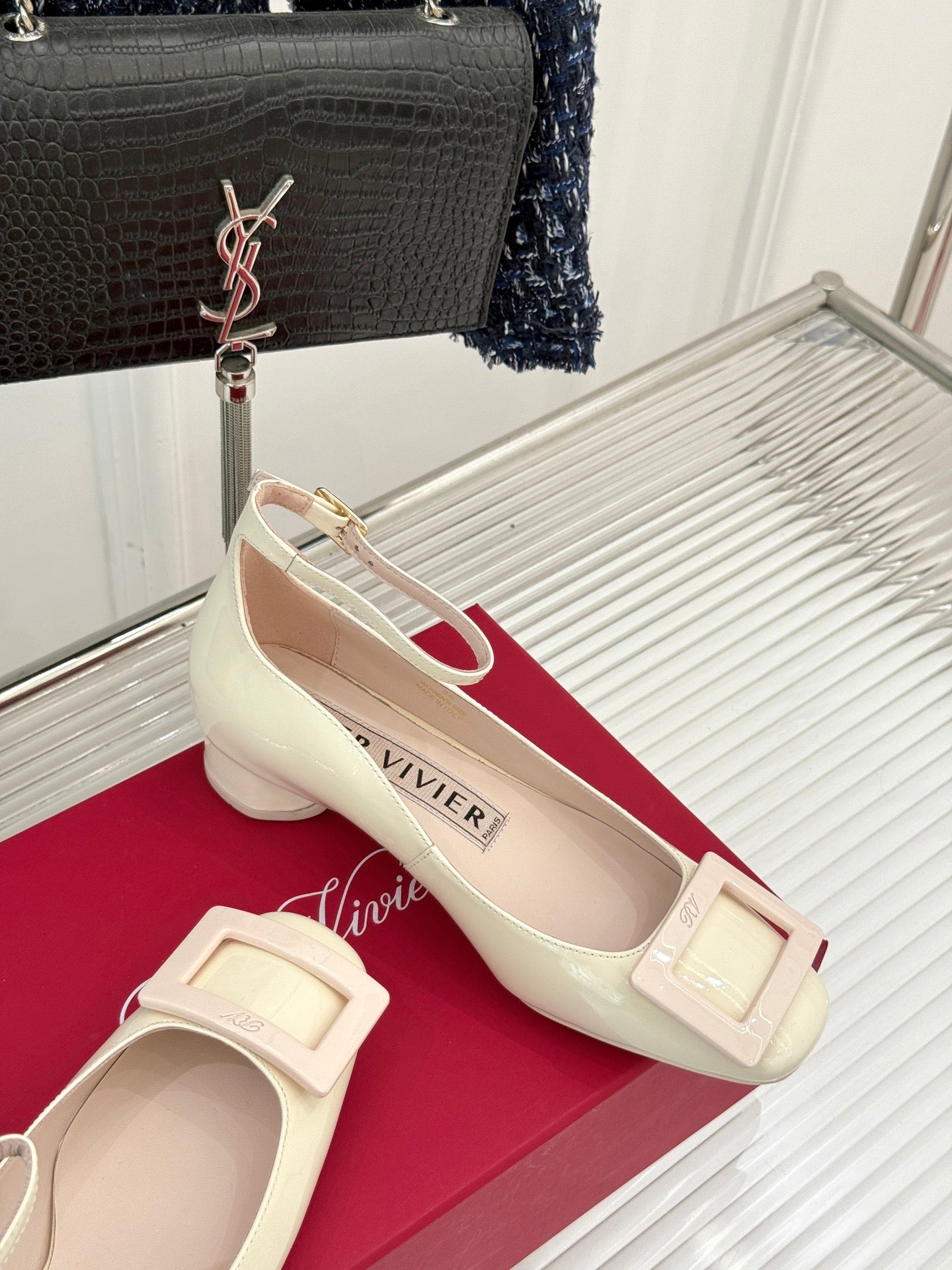 Viv Square Buckle Mary Jane Milky White Fetal Cowhide 286707