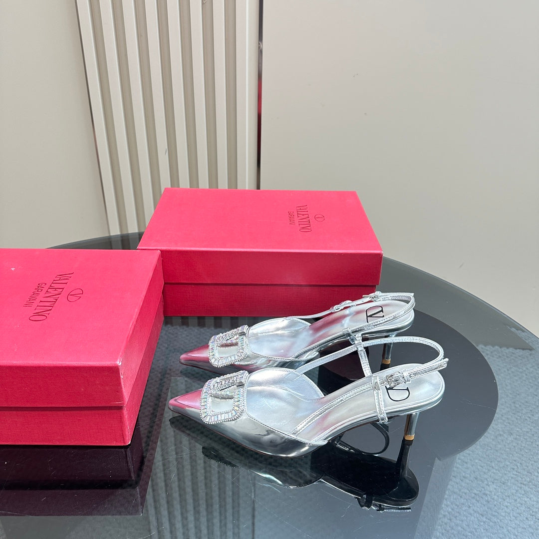 Vlogo Glow Laminated Nappa Leather Slingback Pump 65mm Sliver 999043